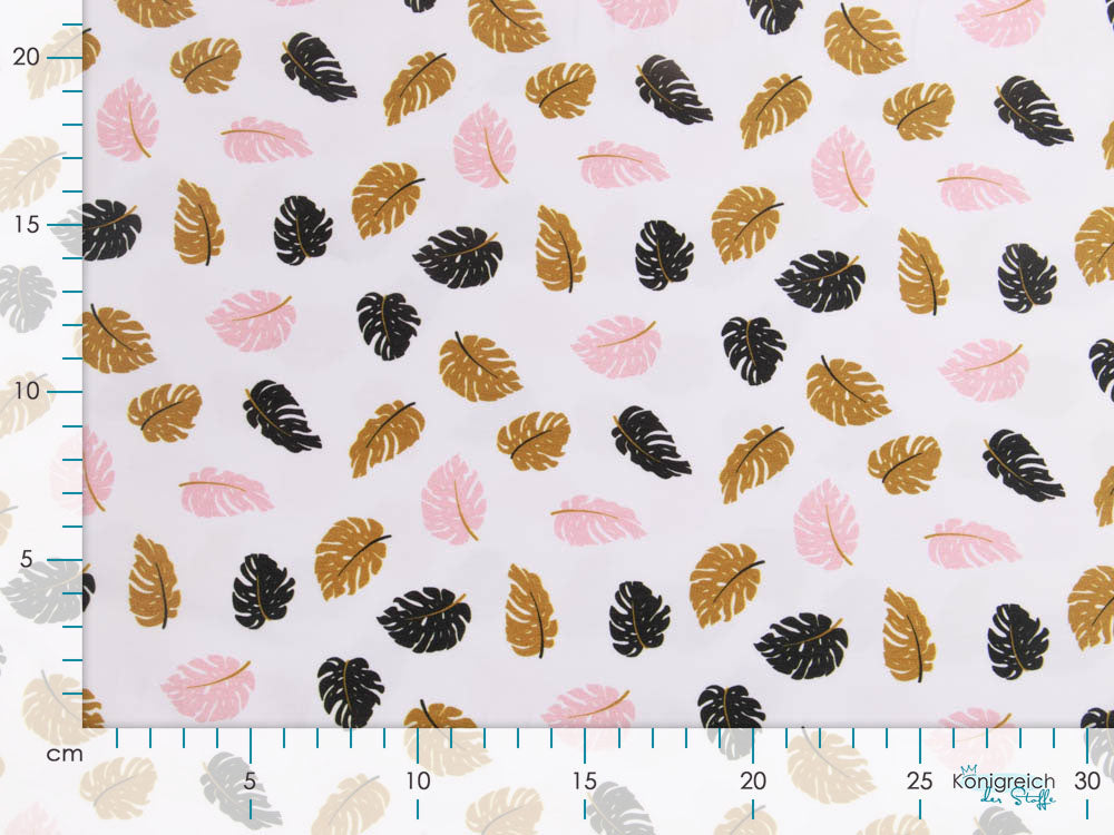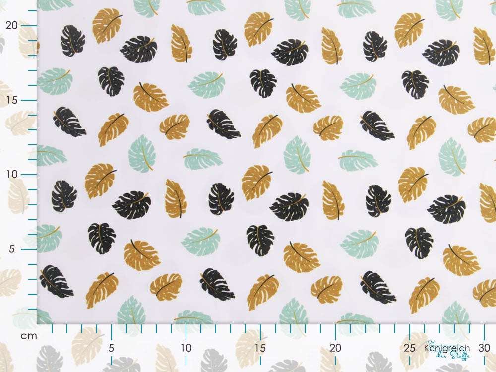 Tropisches Abenteuer wartet! Dieser Jersey von Swafing besticht mit üppigen Monstera-Blättern, die Dschungel-Feeling ins Kinderzimmer bringen. Der geschmeidige Baumwoll-Jersey Theo ist federleicht, atmungsaktiv und perfekt für sommerliche Kinderkleidung, Bettwäsche oder bunte Accessoires. Die großzügigen Blattmuster laden zum Träumen ein und machen jedes Nähprojekt zu einem grünen Abenteuer. Ideal für kleine Naturliebhaber, die es wild und lebendig mögen!