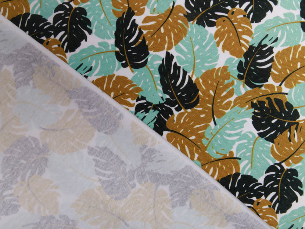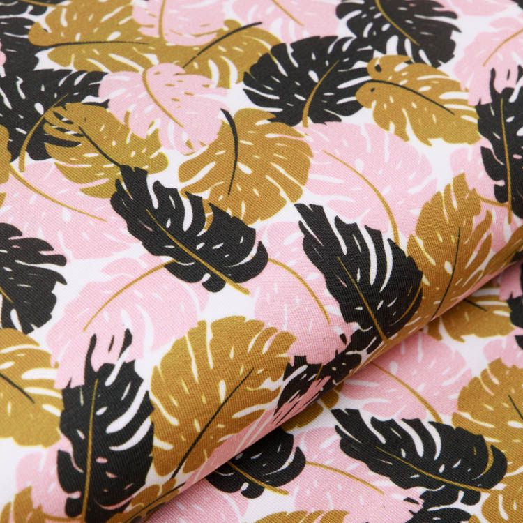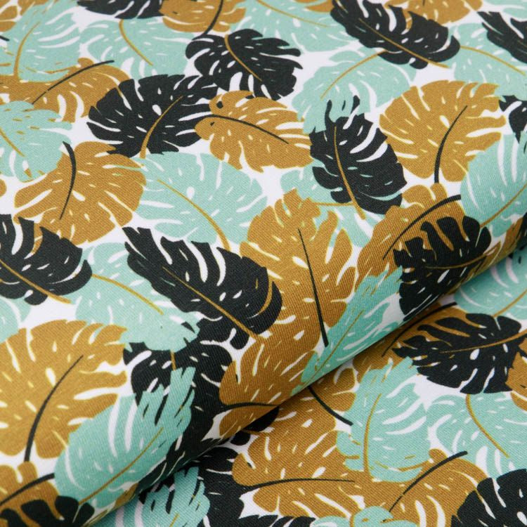 Tropisches Abenteuer wartet! Dieser Jersey von Swafing besticht mit üppigen Monstera-Blättern, die Dschungel-Feeling ins Kinderzimmer bringen. Der geschmeidige Baumwoll-Jersey Theo ist federleicht, atmungsaktiv und perfekt für sommerliche Kinderkleidung, Bettwäsche oder bunte Accessoires. Die großzügigen Blattmuster laden zum Träumen ein und machen jedes Nähprojekt zu einem grünen Abenteuer. Ideal für kleine Naturliebhaber, die es wild und lebendig mögen!