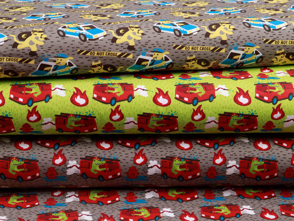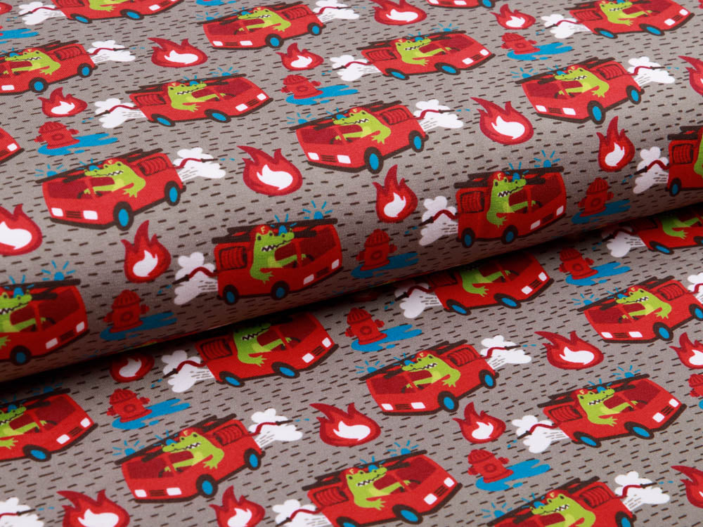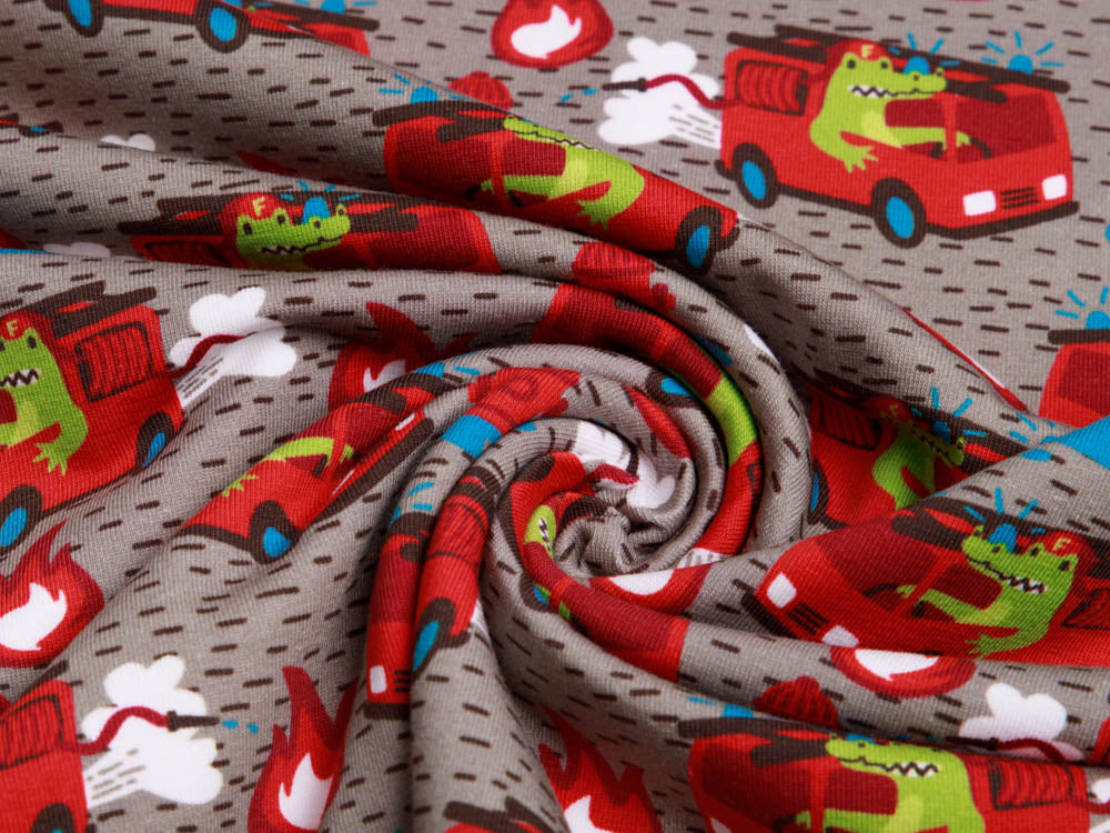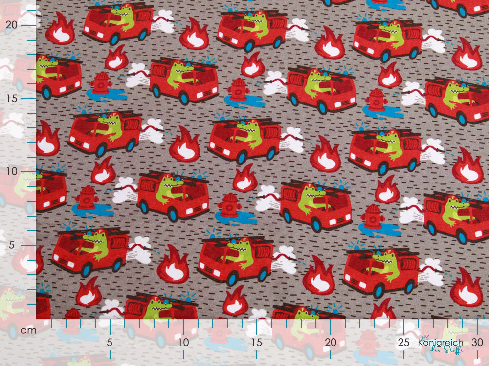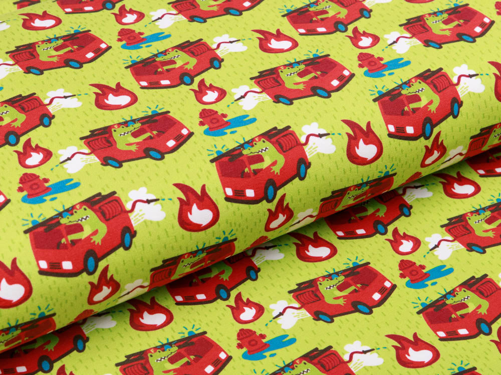 Jersey Swafing - Waulizei & Krokowehr by Käselotti - Feuerwehr Dieser fröhliche Jersey bringt Feuerwehr-Abenteuer in jeden Kleiderschrank! Das liebevoll gestaltete Design von Käselotti zeigt niedliche Motive, die kleine Helden begeistern. Der weiche Swafing-Jersey bietet optimalen Tragekomfort für Kinderkleidung, Patchwork-Projekte oder gemütliche Accessoires. Perfekt für alle, die Qualität und Spielfreude verbinden möchten.