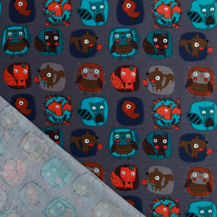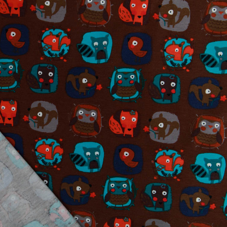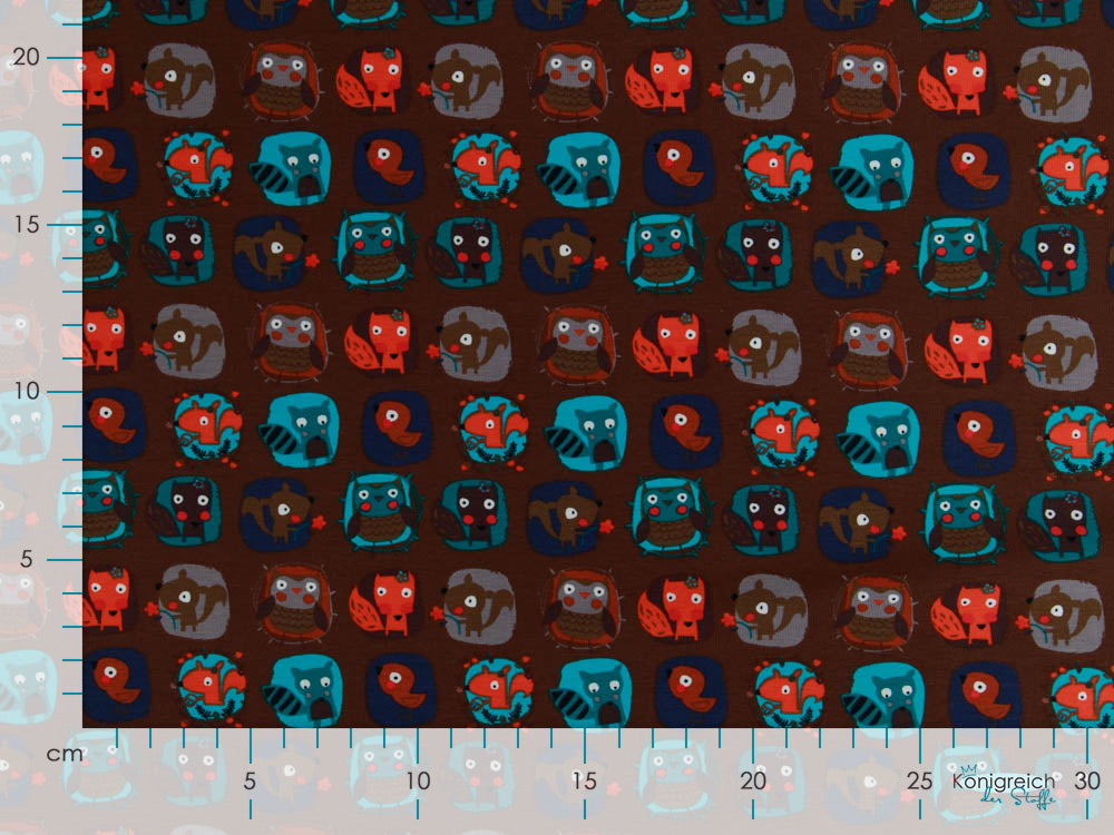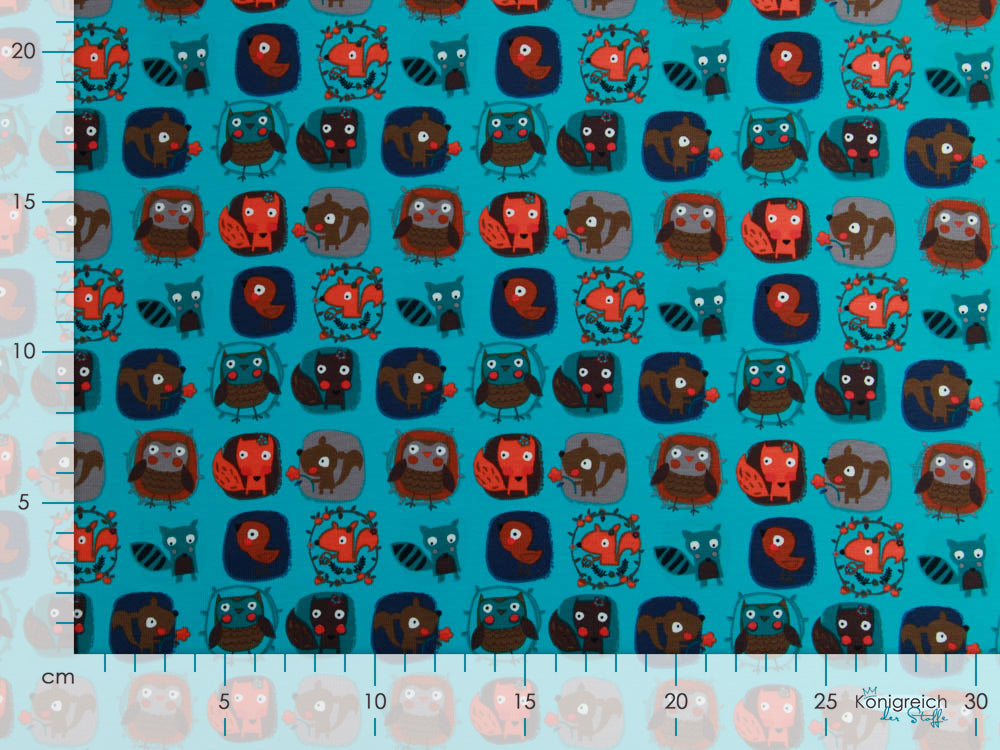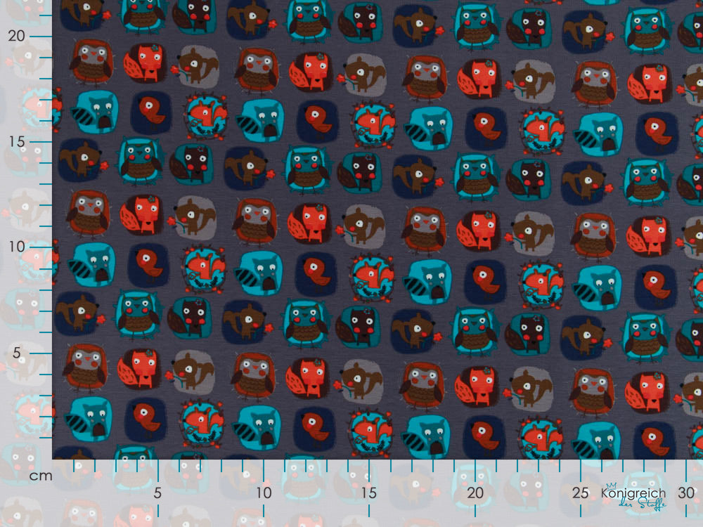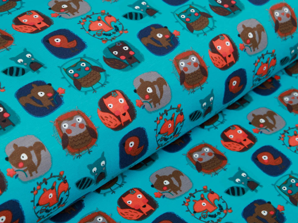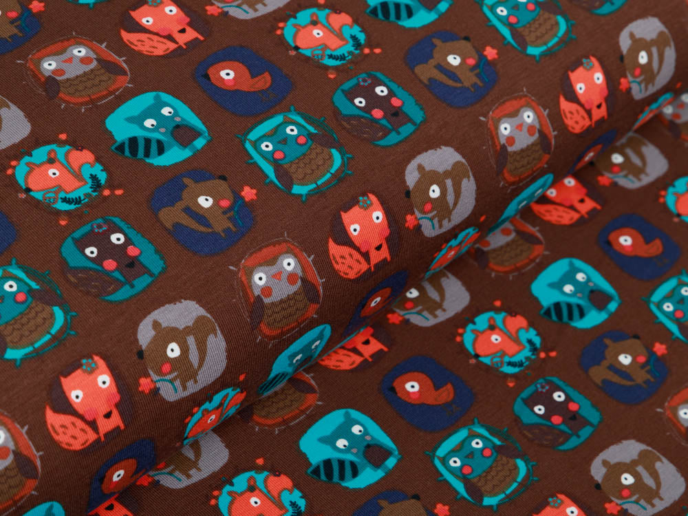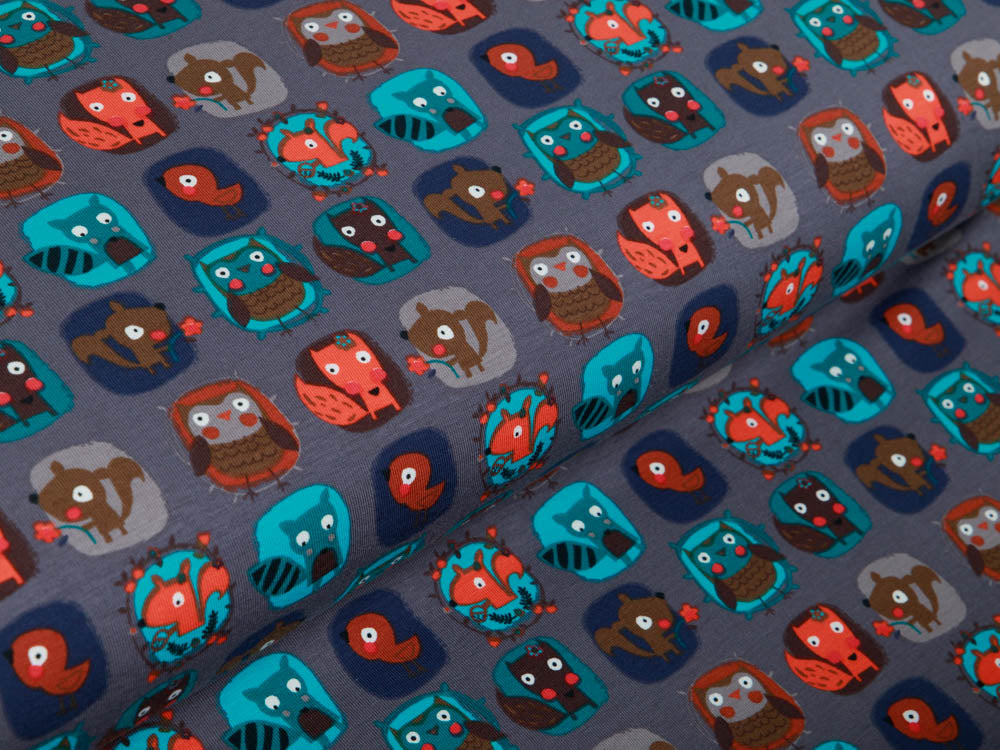 Jersey-Stoff mit charmanten Waldtier-Patches – ideal für Kinderkleidung und Accessoires. Das weiche, elastische Gewebe bietet optimalen Tragekomfort und Bewegungsfreiheit für aktive Kinder. Die liebevoll gestalteten Waldmotive wecken Fantasie und Freude am Tragen. Vielseitig einsetzbar für Shirts, Hoodies, Leggings und mehr. Pflegeleicht und langlebig für intensive Nutzung.