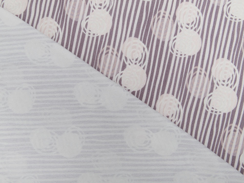 Geometrische Verspieltheit trifft auf zeitlose Eleganz: Dieses Jersey kombiniert grafische Kreise mit feinen Streifen in softem Grau. Die Viskose-Crepe-Mischung schmiegt sich angenehm an und bietet maximale Bewegungsfreiheit – ideal für Kleider mit Schwung, moderne Shirts oder entspannte Freizeitmode. Das ausgewogene Muster passt zu fast allem in Ihrer Garderobe und bringt einen Hauch von Design-Freude in jeden Schnitt. Ein Stoff, der beweist, dass Komfort und Charakter perfekt zusammenpassen.