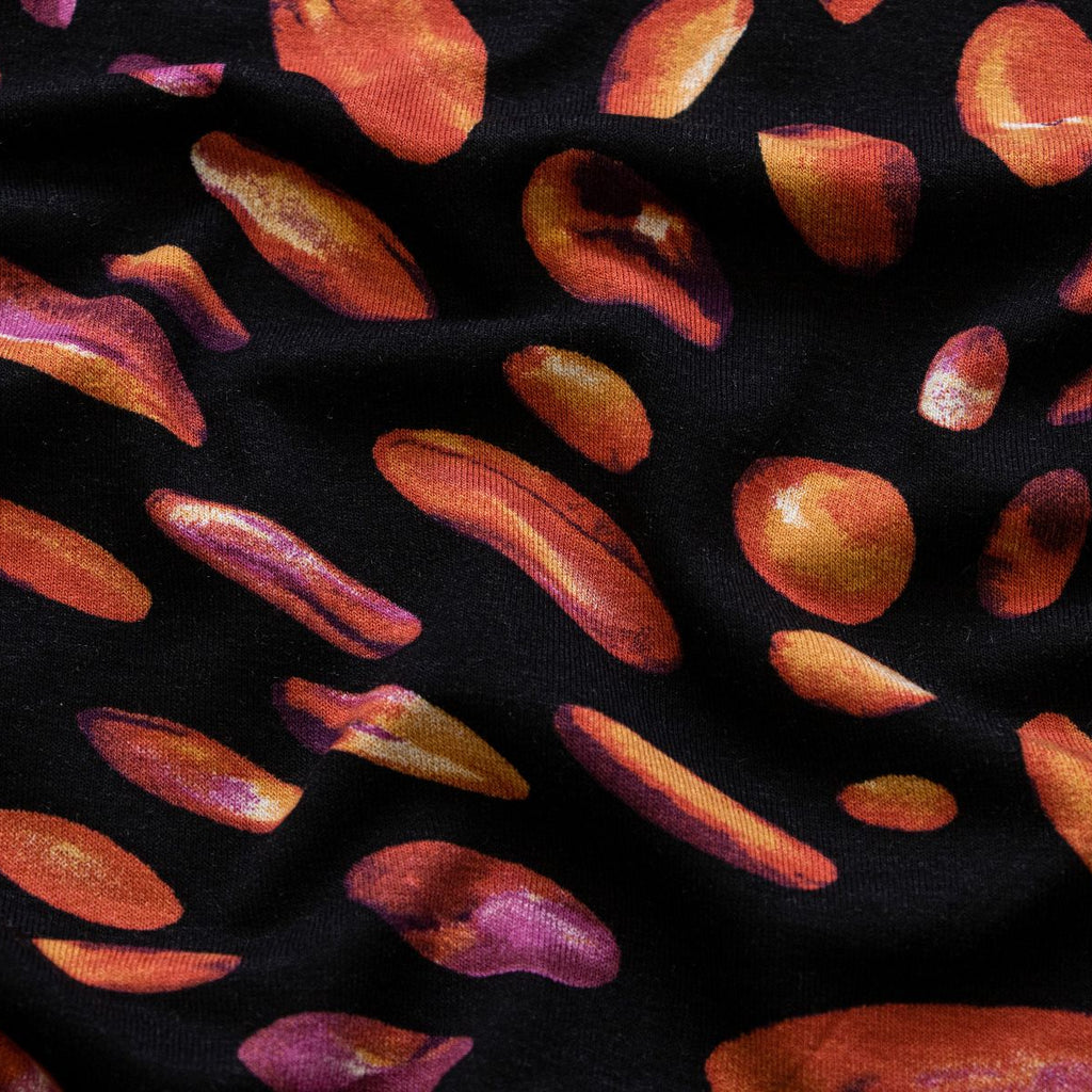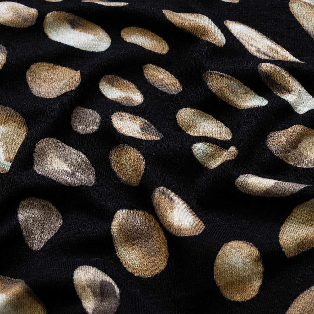 Jersey Viskose mit ovalen Kreisen – ein vielseitiger Stoff für anspruchsvolle Projekte. Das fließende Material kombiniert die Geschmeidigkeit von Viskose mit der Elastizität von Jersey und bietet optimale Verarbeitbarkeit. Das geometrische Muster mit ovalen Kreisen verleiht Kleidungsstücken einen modernen, grafischen Charakter. Ideal für Shirts, Kleider und Loungewear, die Komfort und Design vereinen. Der Stoff besticht durch natürliche Atmungsaktivität und angenehme Hautfreundlichkeit – perfekt für Näherinnen und Designer, die Qualität schätzen.