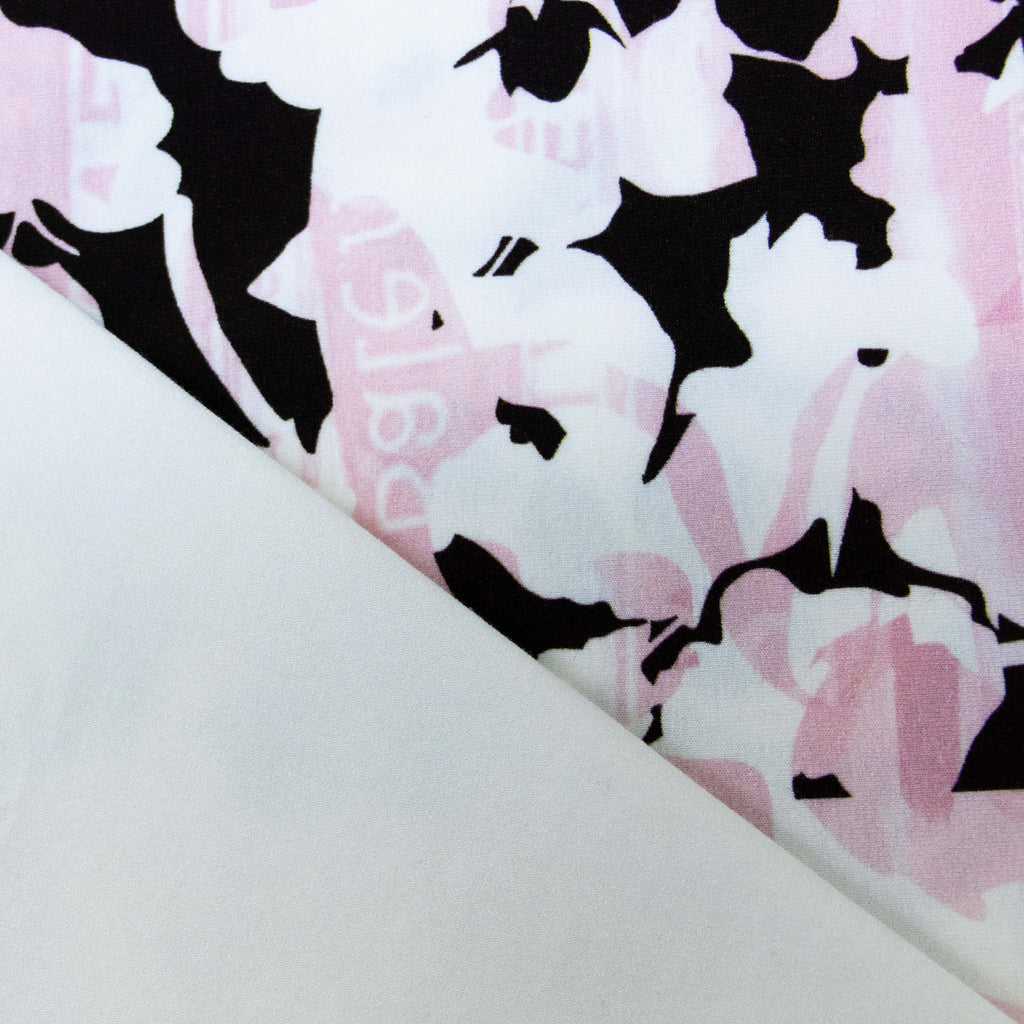 Hochwertiges Viskose-Jersey Panel mit charmanten Blumen- und Schriftzug-Motiven in den Farbtönen Wollweiß und Rosa. Das großzügig geschnittene Panel von ca. 150 cm × 75 cm bietet ausreichend Material für anspruchsvolle Nähprojekte wie Kleider, Tuniken oder Accessoires. Viskose-Jersey besticht durch seine seidige Haptik, natürliche Atmungsaktivität und eleganten Glanz. Das Material fällt wunderbar fließend und eignet sich ideal für körpernahe Schnitte. Perfekt für Näherinnen, die Wert auf Premium-Qualität und durchdachte Designs legen.