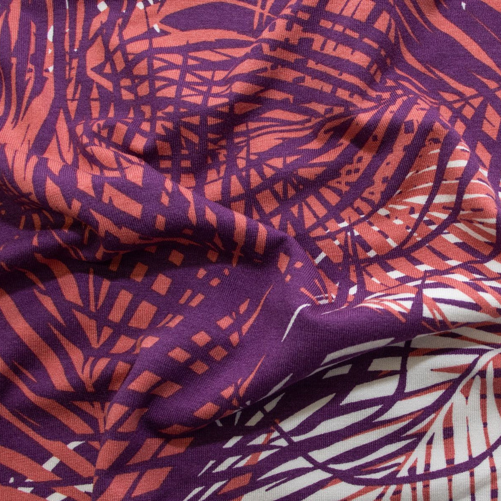 Tropisches Flair trifft auf Vintage-Charme! Dieser geschmeidige Viskose-Jersey entführt dich mit exotischen Palmenblättern in mystischem Lila in ferne Welten. Der fließende Stoff schmiegt sich sanft an und lädt zu kreativen Nähprojekten ein: von sommerlichen Maxikleidern über entspannte Loungewear bis hin zu eleganten Accessoires. Lass dich von der geheimnisvollen Botanik inspirieren und nähe Lieblingsstücke, die Fernweh und Entspannung ausstrahlen.