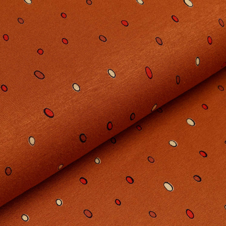 Dieser fließende Viskose-Jersey besticht durch sein verspieltes Muster aus verschobenen Punkten in warmem Ocker – perfekt für Kleidungsstücke mit Bewegungsfreiheit und Tragekomfort. Die weiche Viskose schmiegt sich angenehm an die Haut und eignet sich hervorragend für Kleider, Shirts und Loungewear. Ein Stoff, der Alltag und Stil mühelos verbindet!