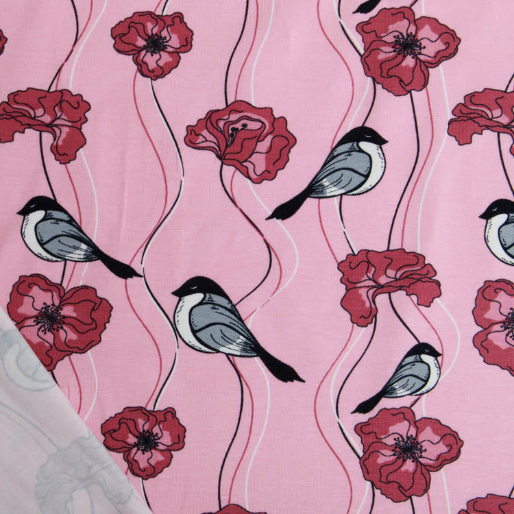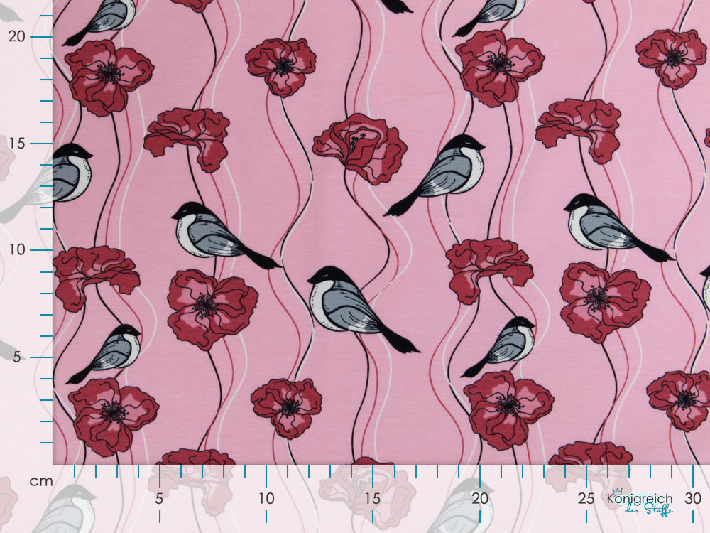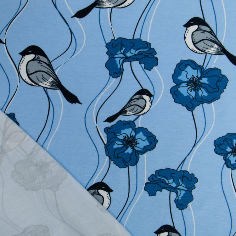 Jersey-Stoff mit verspieltem Vogel- und Blumenmotiv – ideal für Kinderkleidung, Accessoires und Heimtextilien. Das weiche, elastische Jersey-Material bietet hohen Tragekomfort und Bewegungsfreiheit für aktive Kinder. Die farbenfrohen Designs regen die Fantasie an und eignen sich perfekt für T-Shirts, Kleider, Pyjamas und Kissenbezüge. Hautfreundlich, langlebig und einfach zu verarbeiten – ein vielseitiger Klassiker für kreative Nähprojekte im Kinderzimmer.