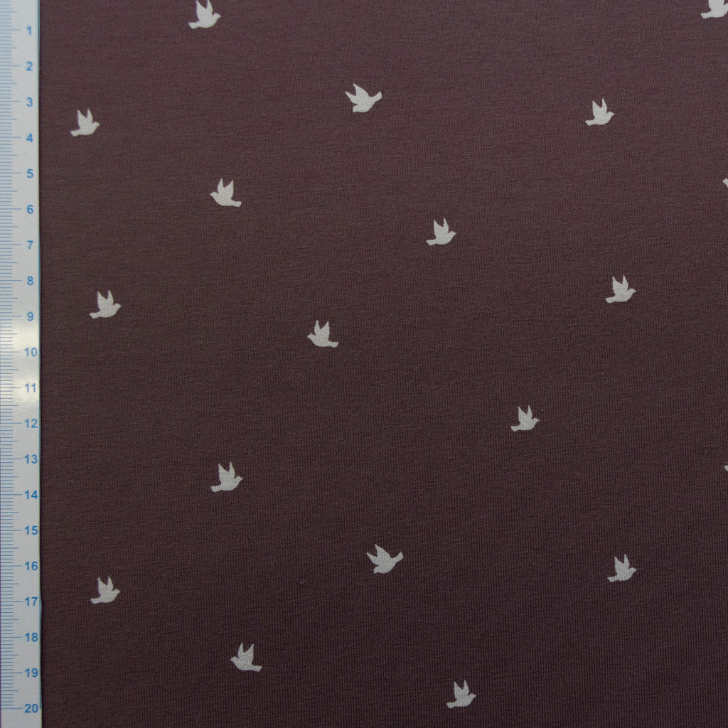 Dieser weiche Jersey-Stoff ist perfekt für Kinderbekleidung: verspielte T-Shirts, fließende Kleider, gemütliche Jogger und kuschelige Hoodies. Die flatternden Vogelschwärme in warmem Mauve erzählen von Freiheit und Abenteuer – ideal zum Träumen und Spielen. Der elastische Stoff sitzt angenehm, ist strapazierfähig und pflegeleicht – genau richtig für aktive Kinder. Ob Nähanfänger oder erfahrener Schneiderer: dieser Stoff macht jedes Projekt zum Erfolg. Ein Material, das Kinderaugen zum Leuchten bringt und Nähen zum puren Vergnügen macht!