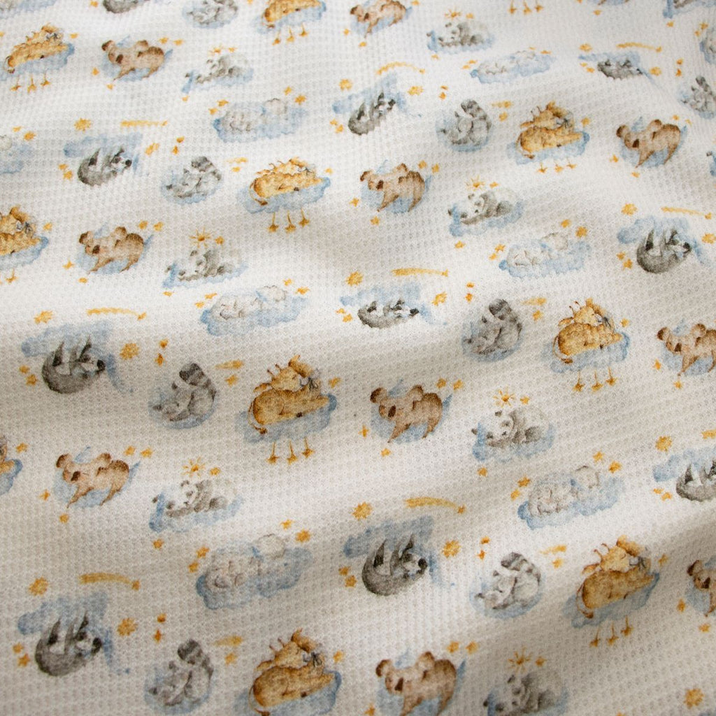 Jersey Waffel mit charmanten Digitaldruck – perfekt für Babys und Kinder! Das weiche, atmungsaktive Material schmiegt sich angenehm an zarte Haut und bietet maximalen Tragekomfort. Das verspielt-liebevolle Design mit verträumten Freunden begeistert kleine Entdecker und macht jedes Kleidungsstück zum Lieblingsstück. Ideal für Bodys, Shirts und Kleider – vielseitig einsetzbar und pflegeleicht. Ein Stoff, der Kinderherzen höher schlagen lässt!