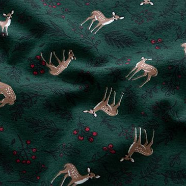 Dieser festliche Jersey besticht durch sein wunderschönes Weihnachtsmotiv mit Rotwild und zarten Zweigen – perfekt für die Adventszeit. Der weiche, angenehme Stoff eignet sich hervorragend für gemütliche Kleidungsstücke wie Pullover, Kleider oder Pyjamas. Mit seinem klassischen Weihnachtsdesign bringt dieser Jersey festliche Freude in Ihre Nähprojekte und schafft kuschelige Lieblingsstücke für die ganze Familie. Ideal für alle, die ihre Kreativität mit saisonalen Motiven ausleben möchten.