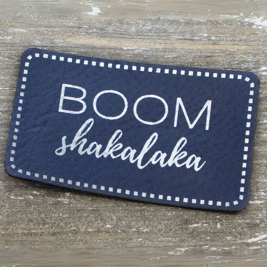 Kunstleder-Label KDS mit dem Schriftzug „Boom shakalaka“ setzt einen stilvollen Akzent in Ihren Kreationen.!