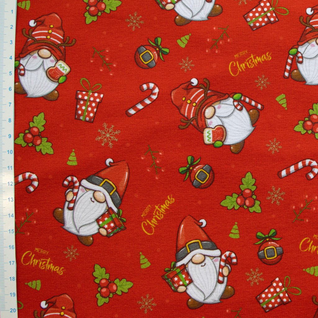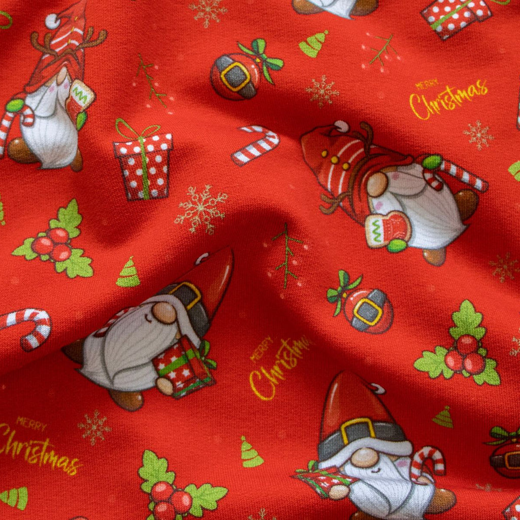 Festliche Weihnachtszwerge tanzen über diesen weichen Sweat-Stoff von Swafing Holly – perfekt für gemütliche Winterprojekte. Die leicht angeraute Oberfläche verleiht dem Stoff eine wunderbar warme, samtige Haptik, während das fröhliche rote Design sofort Weihnachtsstimmung verbreitet. Ideal für Hoodies, Jogger oder kuschelige Accessoires, die garantiert Lächeln auslösen.