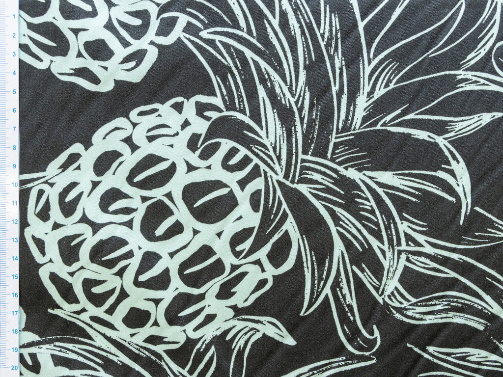 Tropische Frische trifft auf praktischen Komfort! Dieser leicht elastische Stoff besticht mit einem spritzigen Ananas-Muster, das Ihre Kreationen zum Blickfang macht. Die angenehme Elastizität sorgt für optimale Bewegungsfreiheit – perfekt für Hosen und Röcke, die den ganzen Tag bequem sitzen. Das lebendige Design bringt Sommerlaune in Ihre Nähprojekte und lässt sich wunderbar mit verschiedenen Styles kombinieren. Ideal für alle, die Mode mit Persönlichkeit lieben!