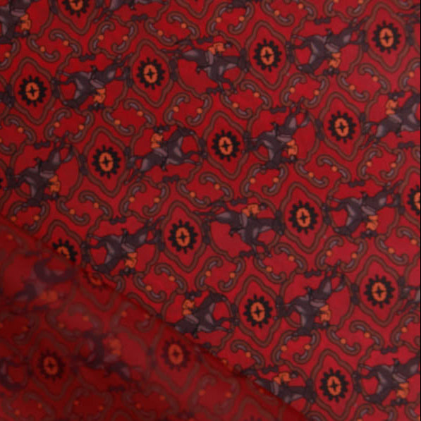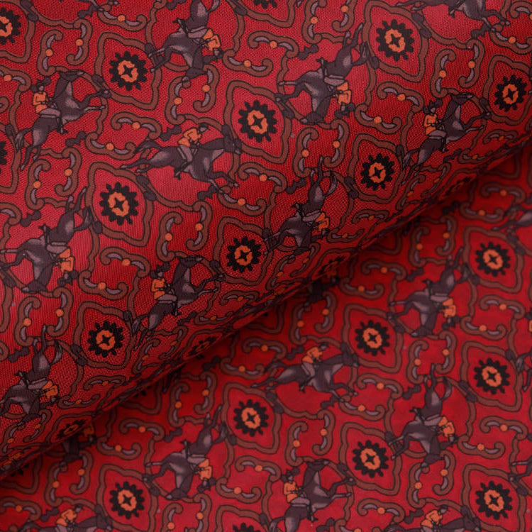 Hochwertiger Leichtgewebe-Futterstoff mit klassischem Pferdemotiv in tiefem Weinrot. Ideal für sommerliche Jacken, Westen oder als dekoratives Futter in Mänteln und Blazern. Das feine Gewebe bietet optimale Bewegungsfreiheit und angenehmen Tragekomfort, während das edle Muster jedem Kleidungsstück eine raffinierte Note verleiht. Perfekt für Näherinnen, die Wert auf Qualität und zeitlose Eleganz legen.