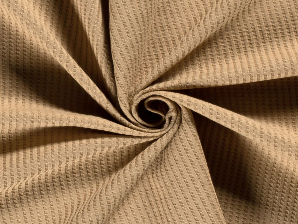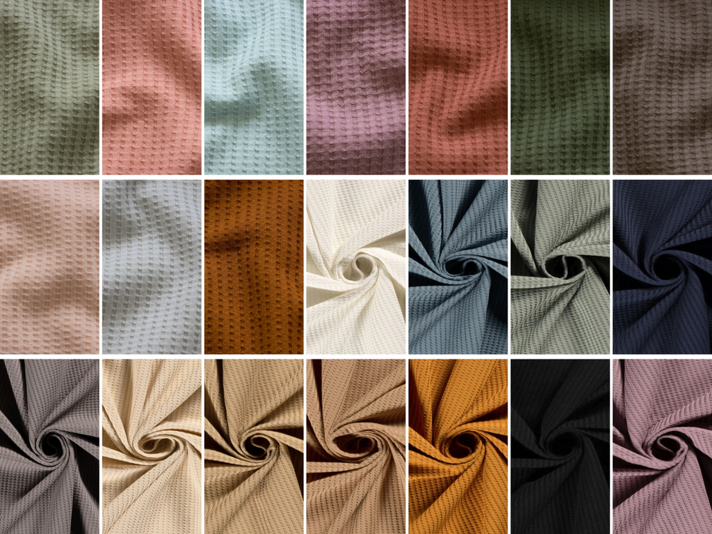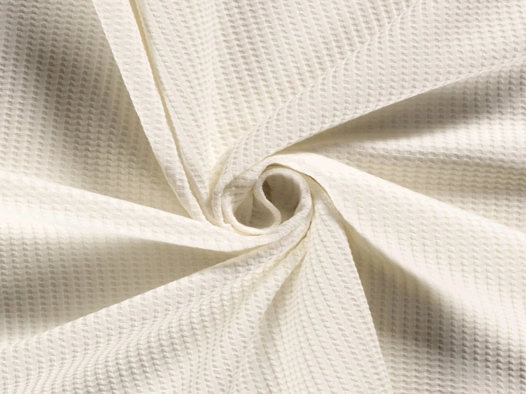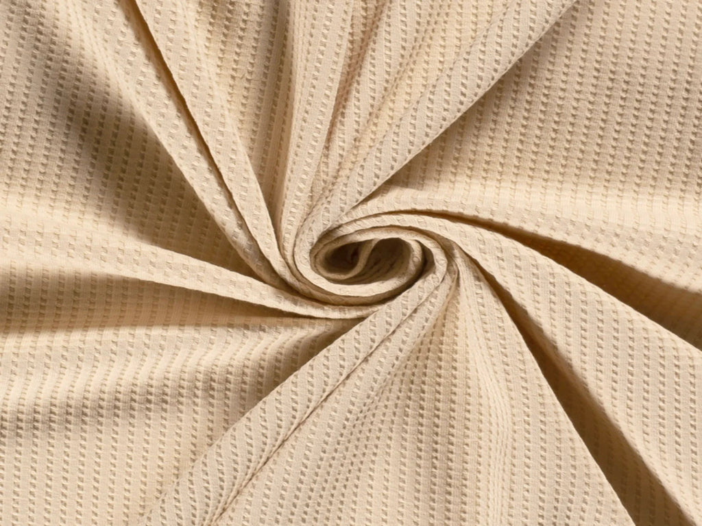 Erleben Sie den leichten Waffeljersey, der mit seiner charakteristischen waffelartigen Oberfläche für optimalen Tragekomfort sorgt. Der dehnbare Stoff mit einem Gewicht von 210 g/m² eignet sich hervorragend für bequeme Shirts, Hosen und Jacken – ideal für Frühling und Sommer. Hergestellt aus atmungsaktiver Baumwolle, hält er die Haut angenehm trocken. Perfekt für Baby-, Kinder-, Damen- und Herrenmode sowie vielseitige Nähprojekte, die Komfort und Stil verbinden.