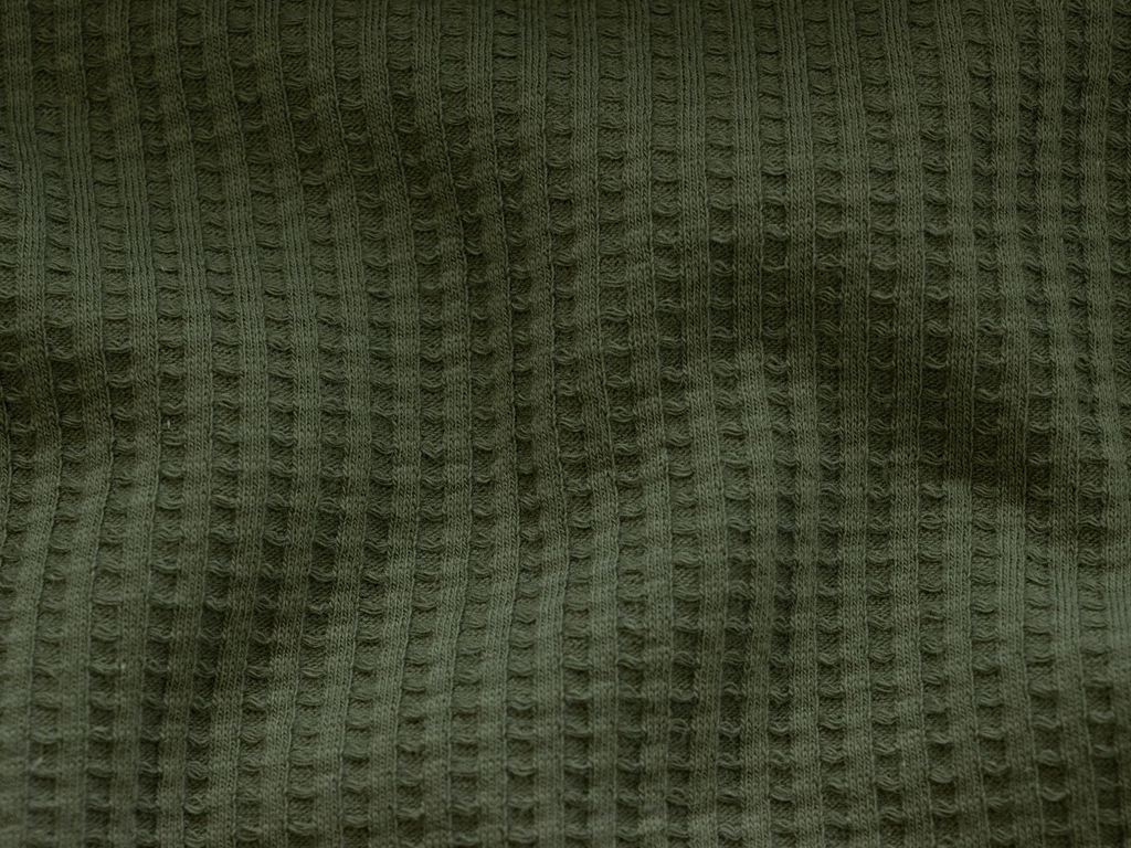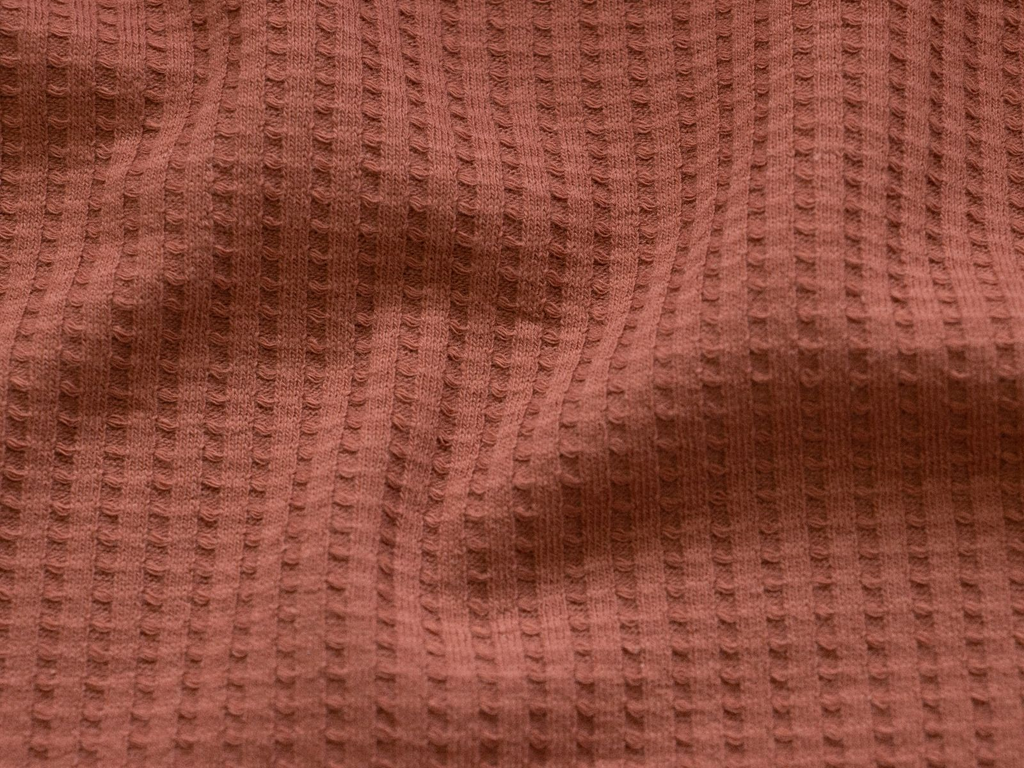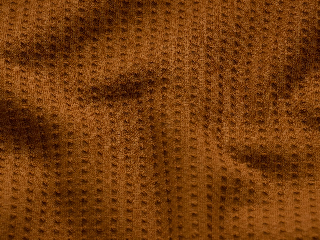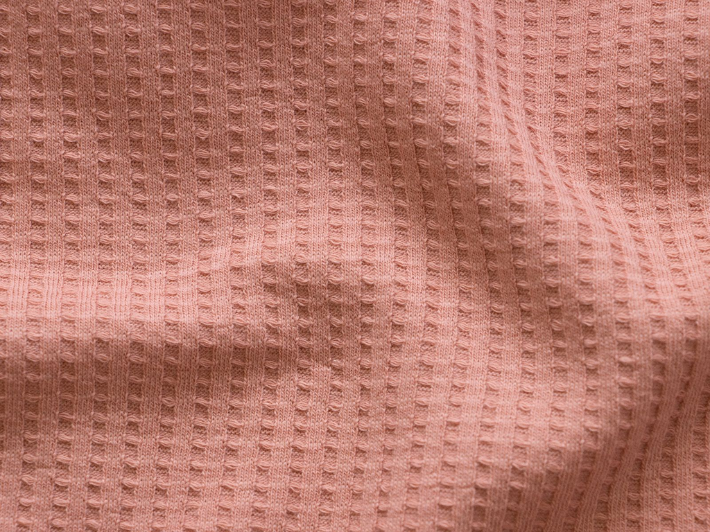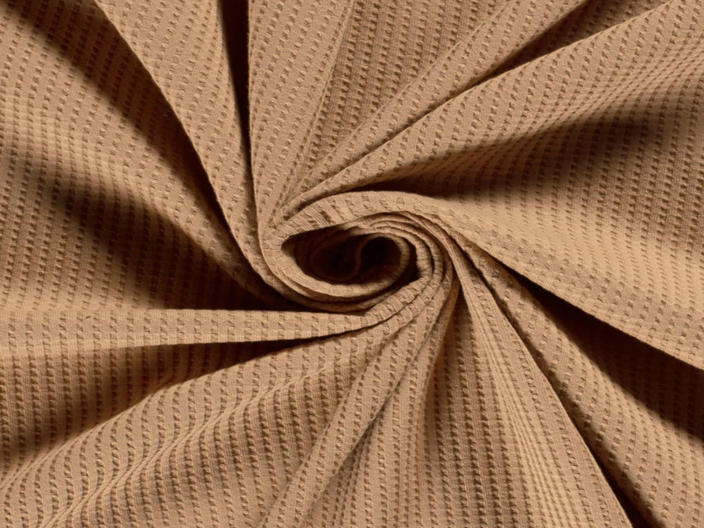 Erleben Sie den leichten Waffeljersey, der mit seiner charakteristischen waffelartigen Oberfläche für optimalen Tragekomfort sorgt. Der dehnbare Stoff mit einem Gewicht von 210 g/m² eignet sich hervorragend für bequeme Shirts, Hosen und Jacken – ideal für Frühling und Sommer. Hergestellt aus atmungsaktiver Baumwolle, hält er die Haut angenehm trocken. Perfekt für Baby-, Kinder-, Damen- und Herrenmode sowie vielseitige Nähprojekte, die Komfort und Stil verbinden.