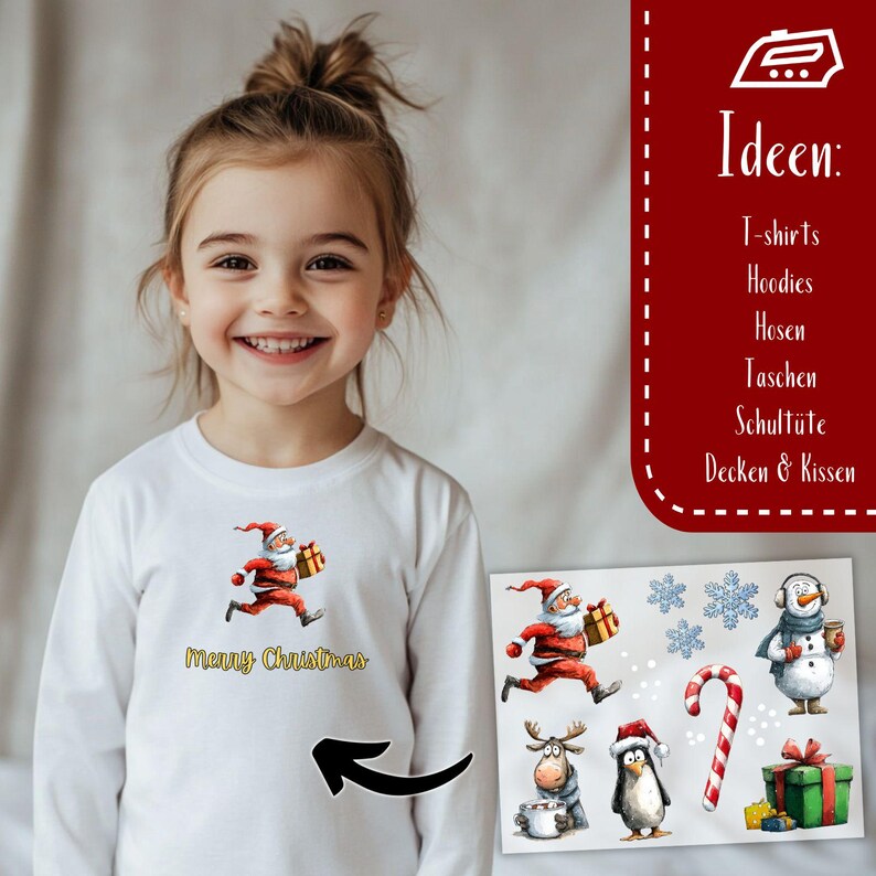 Weihnachten Bügelbilder: Weihnachtsmann, Geschenke, Schneemann, Zuckerstange und vieles mehr; es ist alles mit dabei!