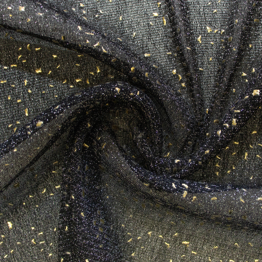 Mesh Dehnbar mit Goldenen Flecken – Schwarz mit Silberglitzer – Glamouröser Stoff für Ihre Nähprojekte