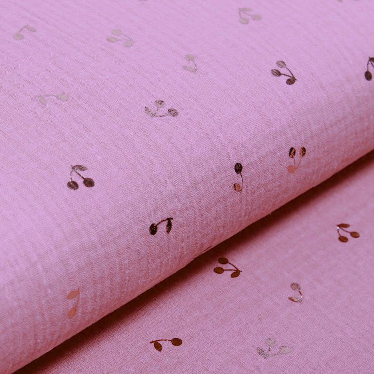 Süß wie die Kirschen drauf: Unser Double Gauze Bambino verbindet zarte Baumwolle mit verspieltem Foliendruck – perfekt für kleine Abenteurer. Das warme Altrosa schmeichelt empfindlicher Babyhaut, während die doppelte Gaze-Struktur atmungsaktiv und angenehm weich bleibt. Ideal für Windeln, Lätzchen, Decken und erste Kleidungsstücke. Ein Stoff, der Babys zum Lächeln bringt und Eltern beruhigt.