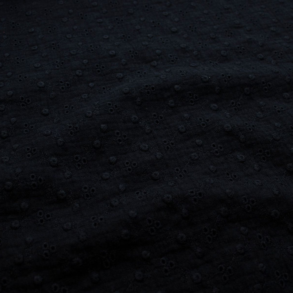 Zartes Musselin-Abenteuer wartet auf dich! Dieses wunderbar leichte Double-Gauze-Baumwollgewebe besticht durch filigrane Lochstickerei mit zierlichen Ranken – perfekt für luftige Sommerkleider, elegante Blusen oder verspielte Accessoires. Die doppelte Gewebestruktur sorgt für angenehme Stabilität, während die durchbrochenen Muster dem Stoff eine romantische, fast schwebende Leichtigkeit verleihen. Ideal für alle, die Handwerk lieben und Textilien mit Charakter bevorzugen.