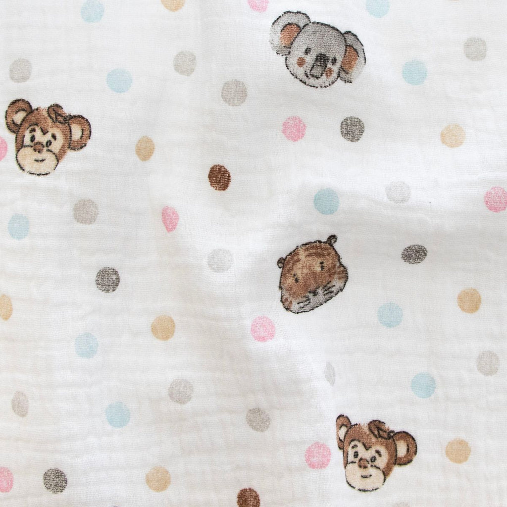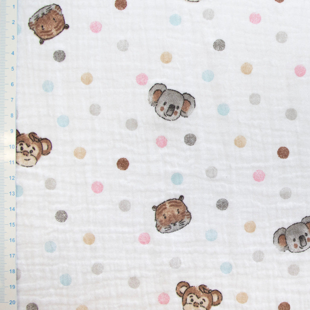 Niedlichkeit trifft auf Funktionalität! Dieses entzückende Musselin Double-Gauze-Gewebe kombiniert süße Tiermotive mit verspielten Pünktchen auf klassischem Weiß. Die doppellagige Baumwolle ist sanft zur empfindlichen Babyhaut, wunderbar atmungsaktiv und wird mit jeder Wäsche noch gemütlicher. Ideal für Bodys, Windeln, Spucktücher oder Bettwäsche – ein vielseitiger Begleiter für alle kleinen Abenteuer des Alltags!