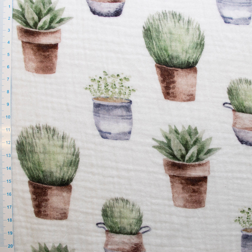 Zartes Musselin-Abenteuer wartet! Dieses wunderbar leichte Double-Gauze-Baumwollgewebe von Swafing besticht durch sein charmantes Blumentöpfe-Muster in klassischem Weiß. Perfekt für luftige Sommerkleider, kuschelige Babytextilien oder fließende Accessoires. Die doppelte Gewebestruktur sorgt für sanfte Stabilität ohne Steifheit – ideal für Projekte, die Bewegungsfreiheit und Komfort vereinen. Ein vielseitiger Stoff, der Näher:innen mit seinem feinen Griff und der natürlichen Baumwollqualität begeistert.