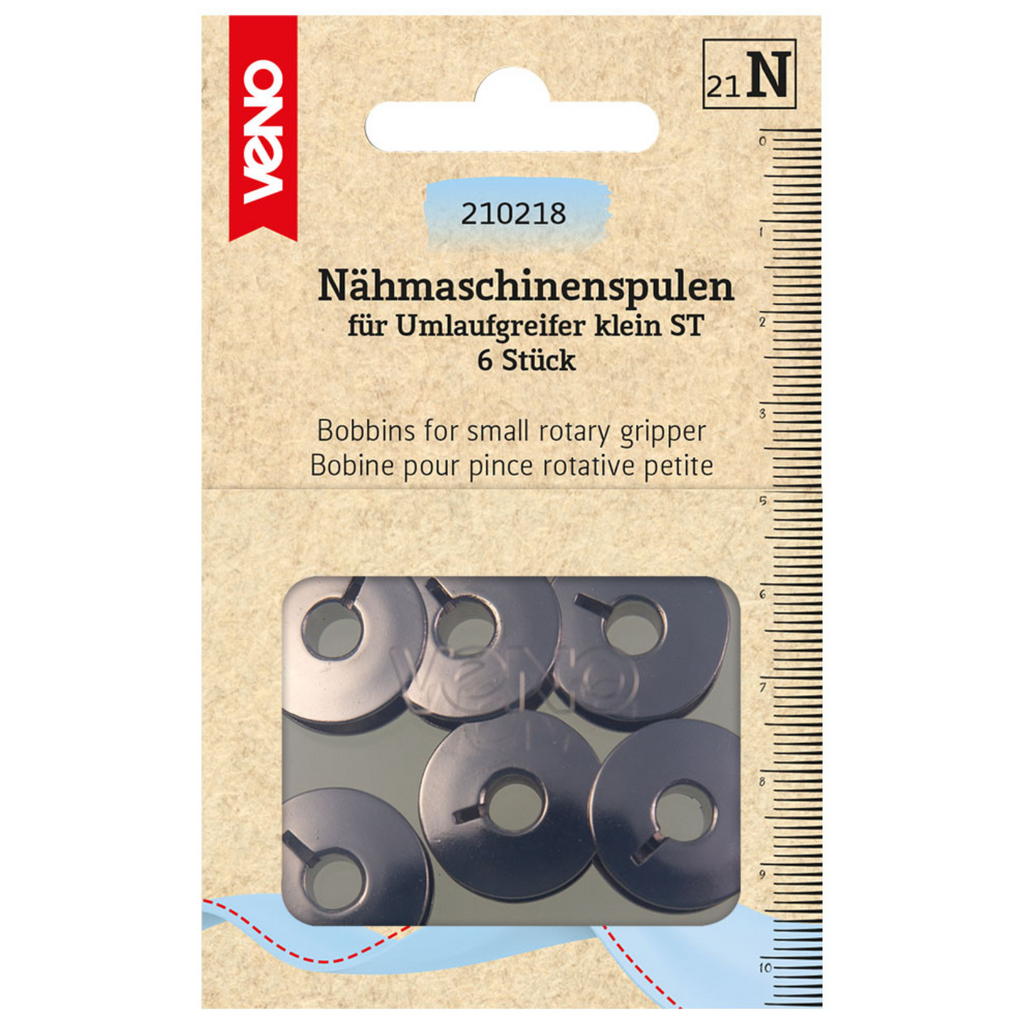 Mit diesen Nähmaschinenspulen für Umlaufgreifer klein ST bist du bestens gerüstet! Im praktischen 6er-Set im MaxiCase bringen sie mit Ø 21,1 mm und einer Höhe von 9,1 mm Schwung in deine Nähprojekte. So macht das Nähen gleich doppelt so viel Spaß – flink, fröhlich und immer einsatzbereit!