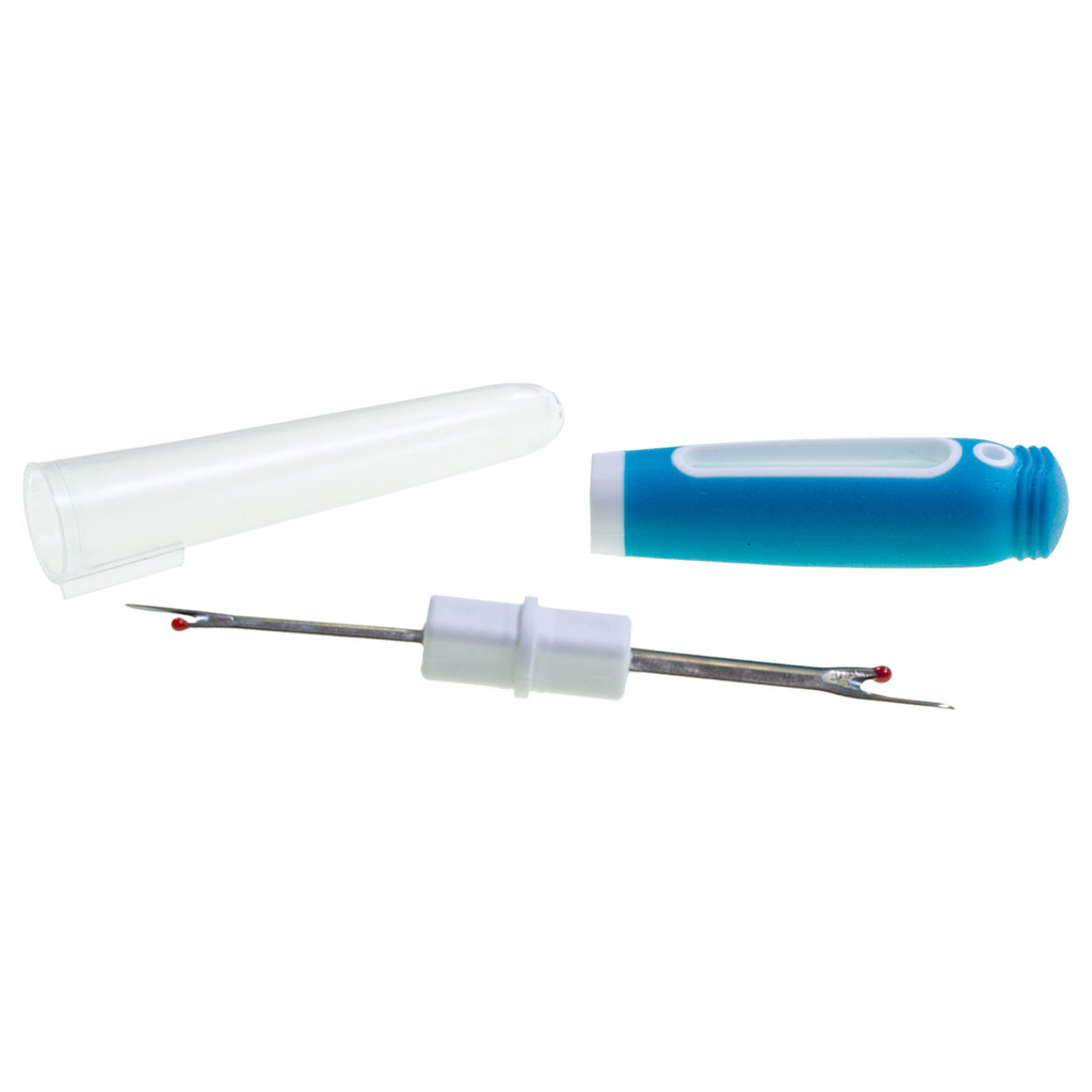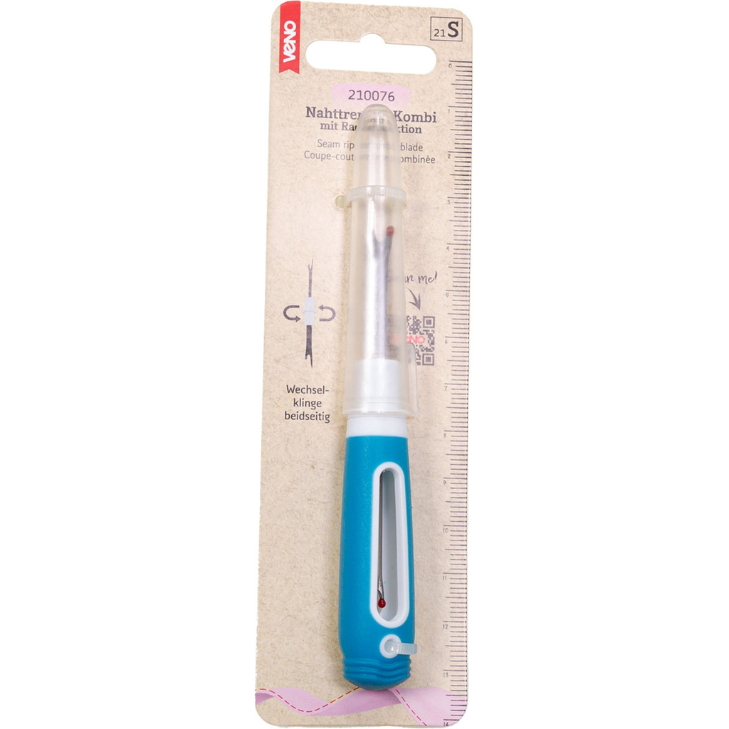 Der Nahttrenner KOMBI klein & groß mit Radierfunktion ist mit einem Gummi-Radierer ausgestattet, der Fadenreste nach dem Auftrennen der Naht gründlich entfernt. Dieses präzise Werkzeug ermöglicht schnelle und schonende Schnitte in den Nähten, ohne den Stoff zu beschädigen. Es eignet sich perfekt zum Korrigieren kleiner Fehler oder zum vorsichtigen Öffnen von Nähten – ein unverzichtbarer Begleiter für anspruchsvolle Näharbeiten.