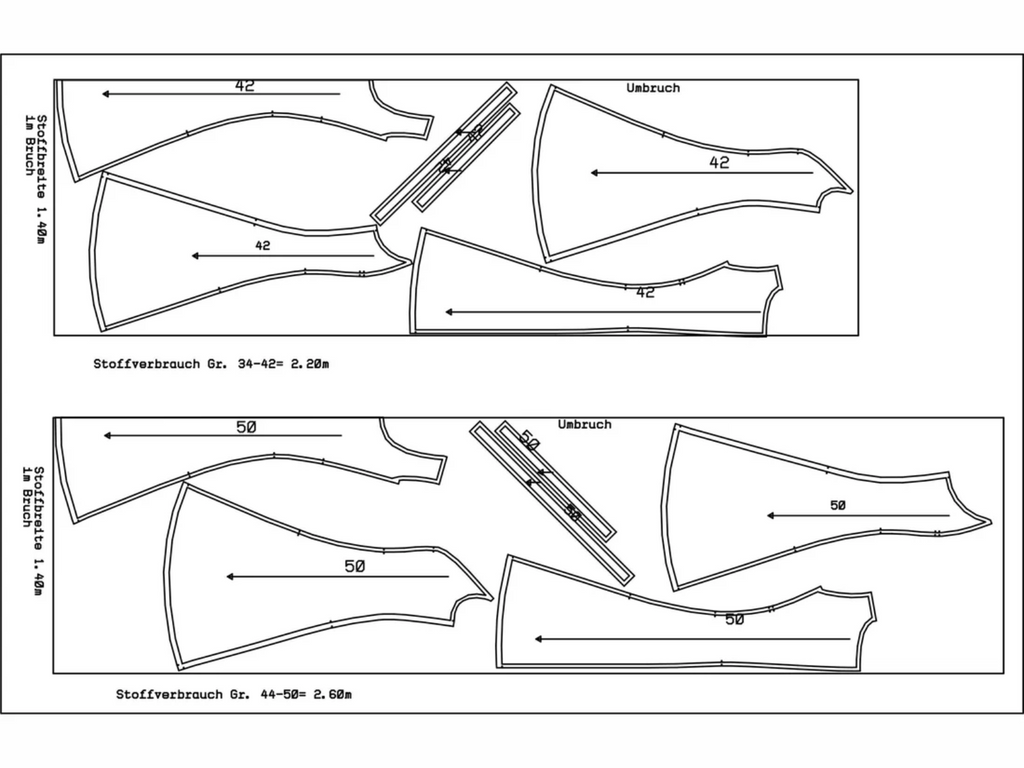 Abwandlungen des Schnittmusters zu sehen, die nicht im Schnitt enthalten sind.