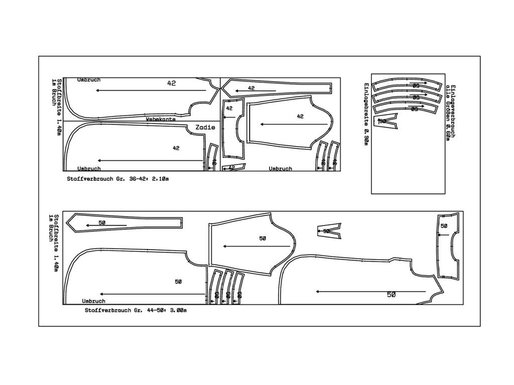 Abwandlungen des Schnittmusters zu sehen, die nicht im Schnitt enthalten sind.