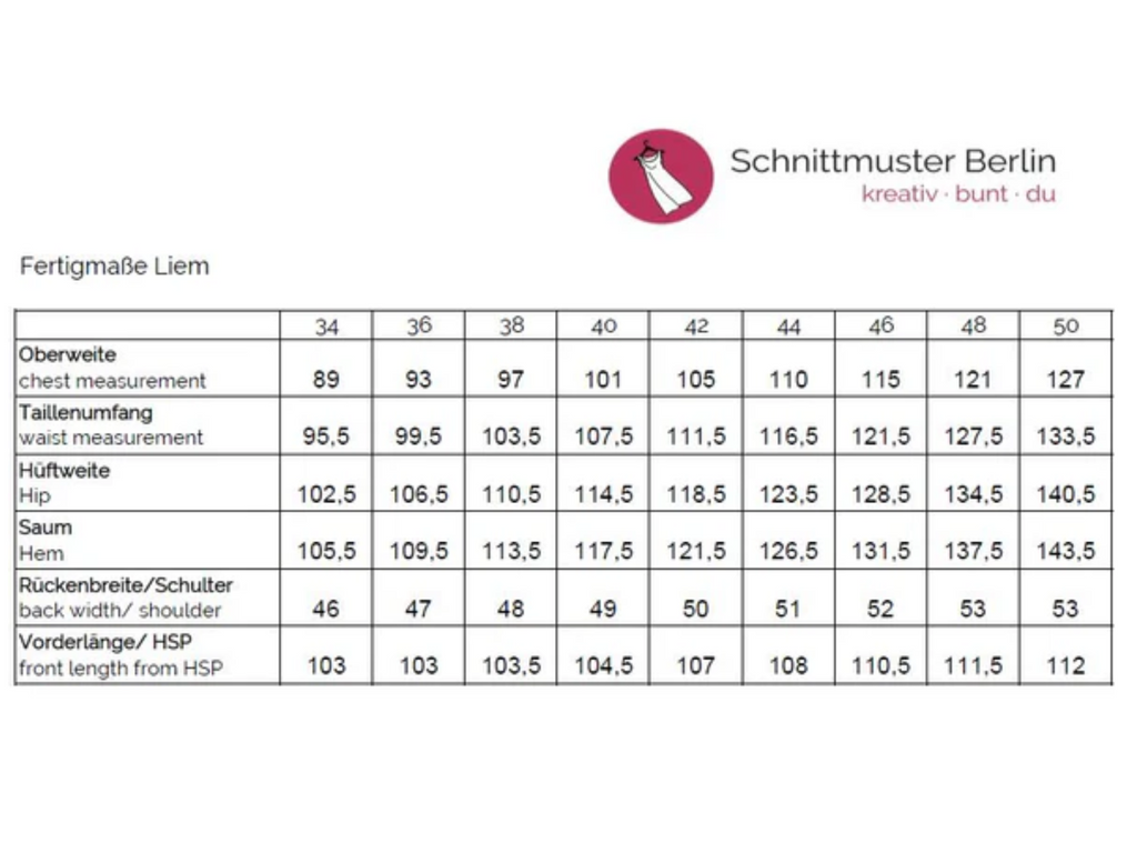 Hersteller: Schnittmuster Berlin Ringbahnstraße 105-107 12103 Berlin Deutschland info@schnittmuster-berlin.de