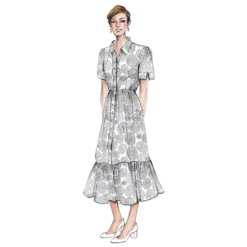 Der Look wird perfekt durch die durchgängige Knopfleiste vom Kragensteg bis zur Rüsche – damit kannst du das Kleid je nach Laune hochgeschlossen oder lässig offen tragen. Ja, es sind ein paar Knopflöcher zu nähen, aber das schaffst du!