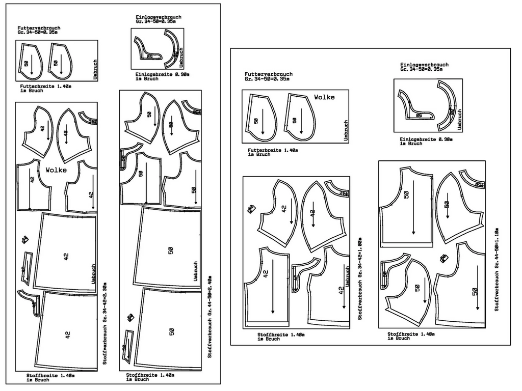 Abwandlungen des Schnittmusters zu sehen, die nicht im Schnitt enthalten sind.