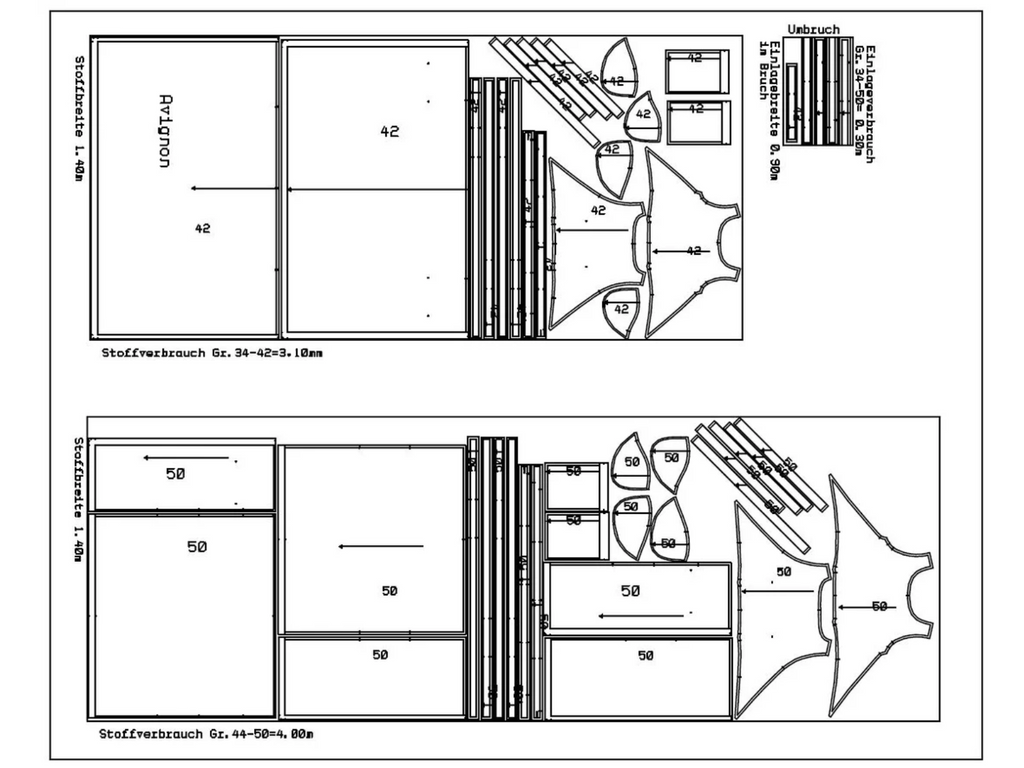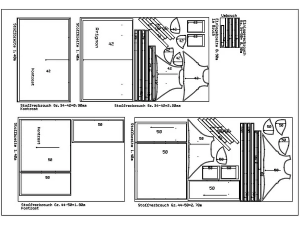 Abwandlungen des Schnittmusters zu sehen, die nicht im Schnitt enthalten sind.
