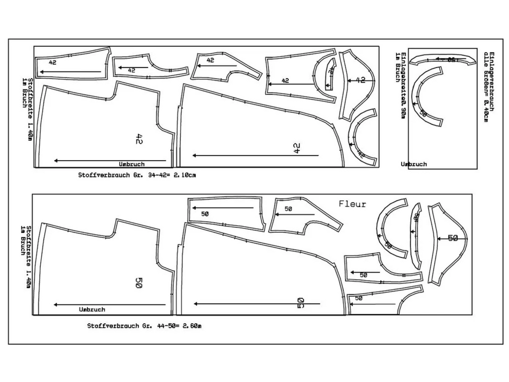 Größen 34-42 : Oberstoff 2,10m (140cm breit)