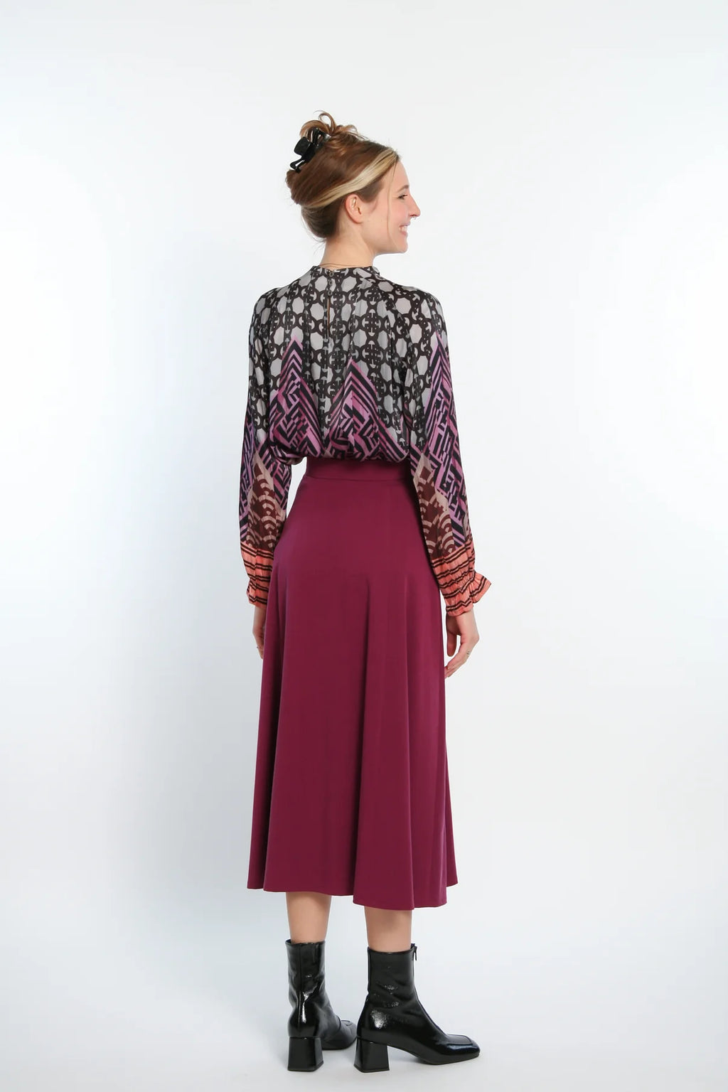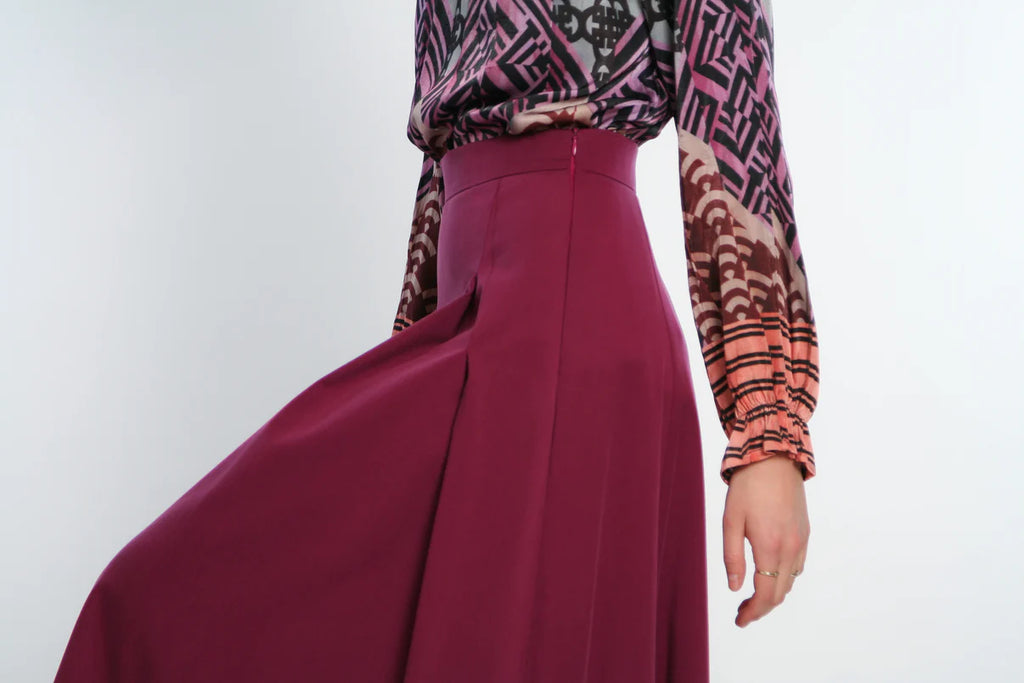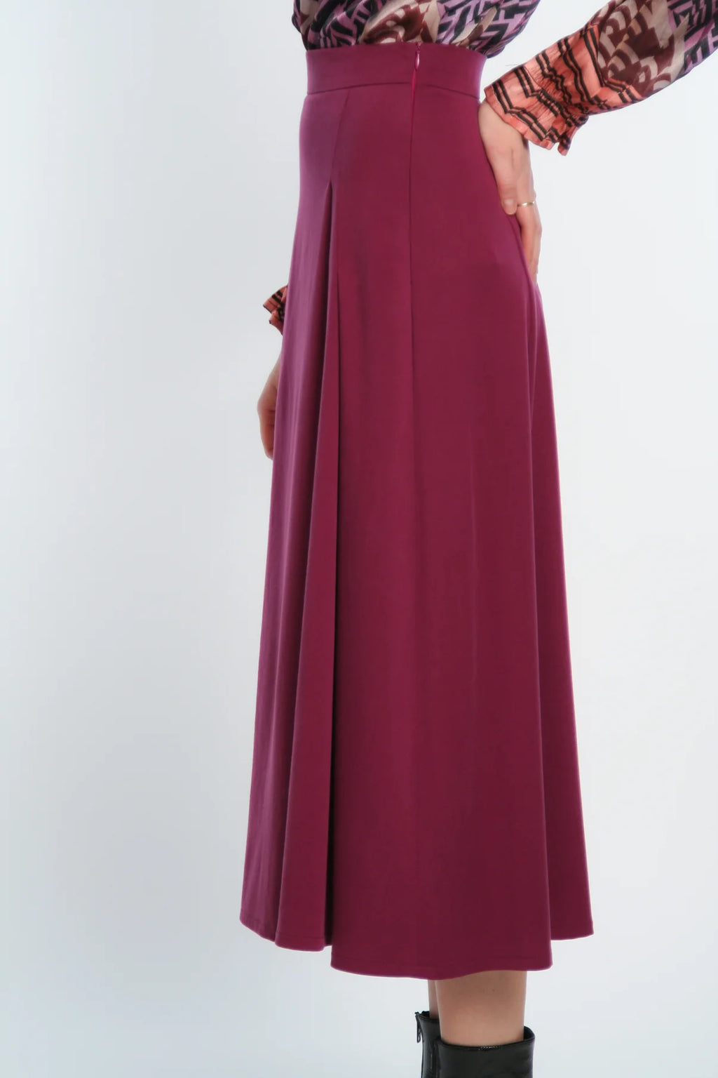 Der weit schwingende Midirock Vivien kleidet dich an kühlen Tagen ebenso wie in den sonnenreichen Monaten. Entsprechend gestylt, mit oder ohne Strumpfhose, Stiefel oder Sneaker, Vivien ist ein echtes Allround - Schnittmuster. Die gelegten Falten im Vorderteil werden ein Stück abgesteppt, dadurch ist der obere Bereich schön schmal und fällt weich zum schwingenden Saum.