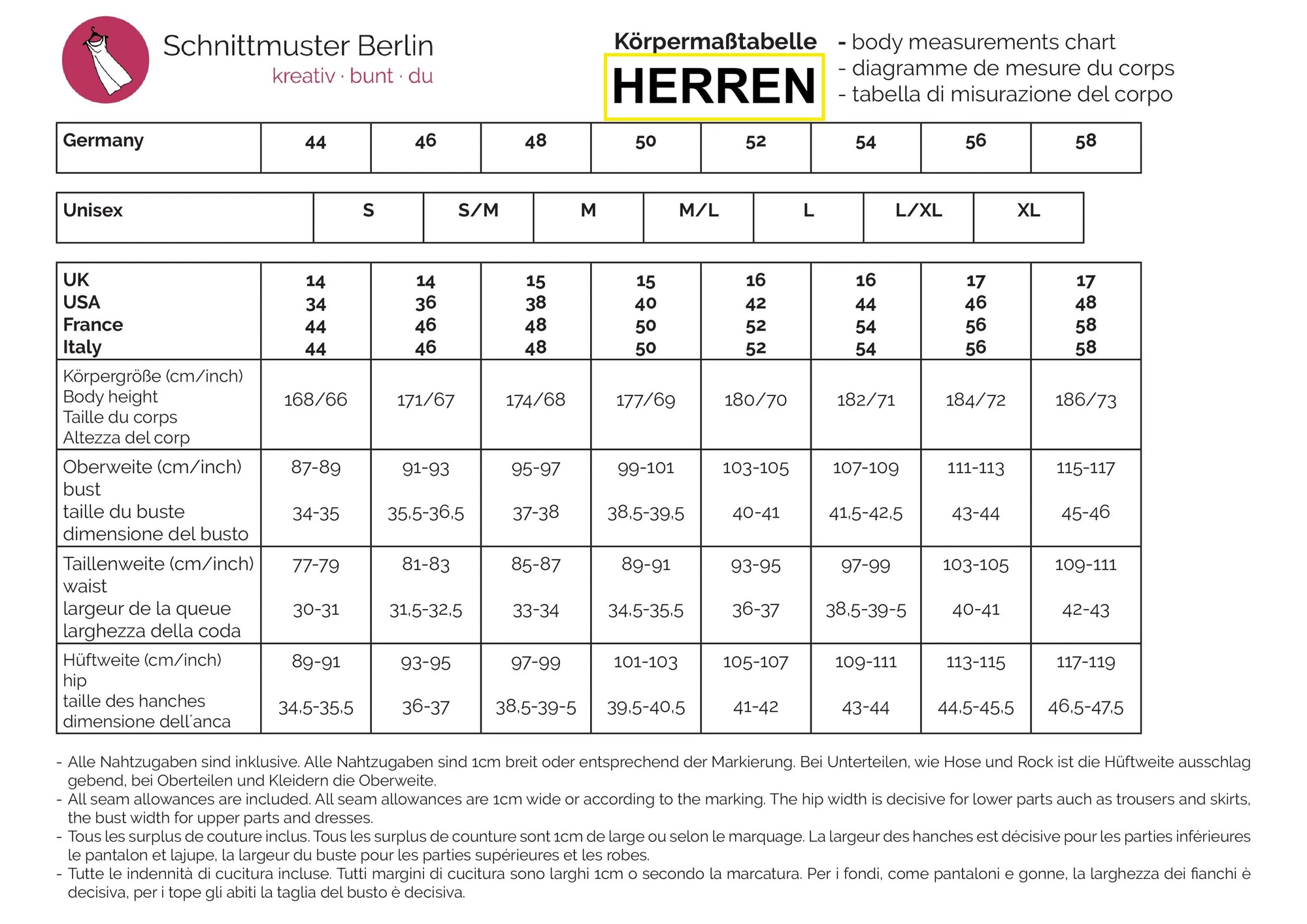 Erhältlich als Ebook mit Ebenen (A4, A0-Rollendruck, Beamerdatei) und als Einzel- und Mehrgrößenschnitt von 34-50.