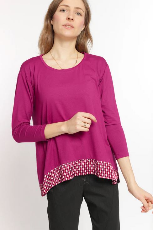 Unser Schnittmuster Shirt Glenn in A-Form ist ein Shirt für jeden Tag. Es lässt sich vielfältig kombinieren und ist schön bequem. Der große Ausschnitt und der nach hinten länger werdende Saum sind modern und lässig. Die farblich abgesetzte Blende gibt einen tollen Kontrast zum restlichen Stoff und betont den weich fallenden, stufigen Saum.
