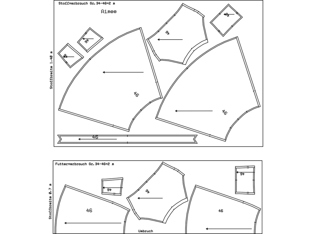 Wir empfehlen dir einen leichten Stoff wie Baumwolle, Viskose oder Seide, sollte er blickdicht sein, kannst du auf das Futter verzichten, dann aber für die bessere Verarbeitung das Oberteil doppelt arbeiten.