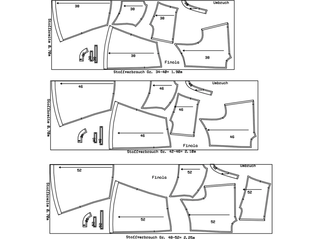 Abwandlungen des Schnittmusters zu sehen, die nicht im Schnitt enthalten