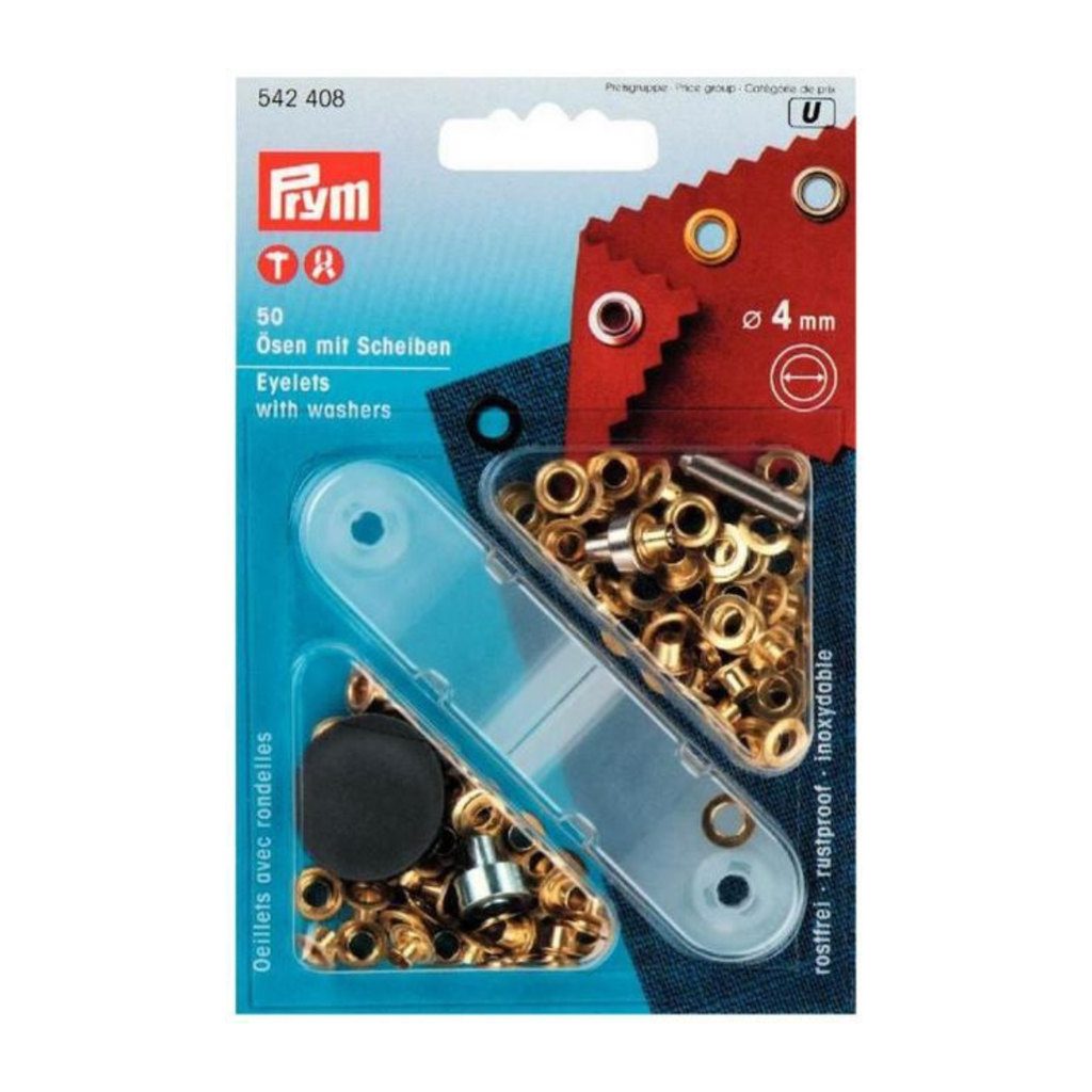 Prym Ösen und Scheiben in Gold – das perfekte Zubehör für Ihre Nähprojekte. Dieses Set enthält 50 hochwertige Ösen mit passenden Scheiben in der Größe 4,0 mm. Ideal zum Verstärken von Loch- und Öffnungen in Stoffen, Leder und anderen Materialien. Die goldene Farbe verleiht Ihren Projekten einen eleganten, hochwertigen Look. Einfach zu verarbeiten und langlebig - ein Muss für jeden Näh- und Handwerksfan.