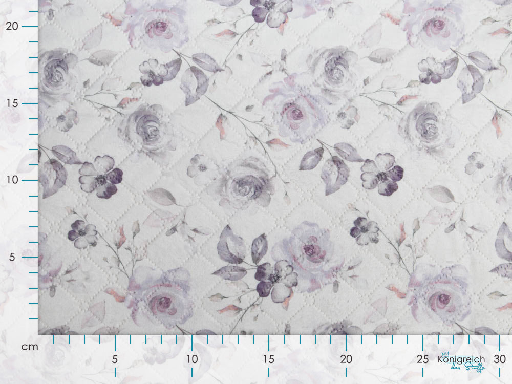 Zartes Rosenbouquet trifft auf kuschelweiche Teddy-Optik – dieser Doubleface-Stoff ist ein Traum für gemütliche Kinderkleidung! Die sanfte Farbkombination aus Wollweiß und Pastelllila schmeichelt jedem Teint und wirkt beruhigend. Das robuste Rautensteppermuster sorgt für Struktur und Wärmeisolation, während die flauschige Rückseite maximalen Kuschelfaktor bietet. Perfekt für Jacken, Decken und Lieblingsstücke, die Kinder nicht mehr ausziehen mögen!
