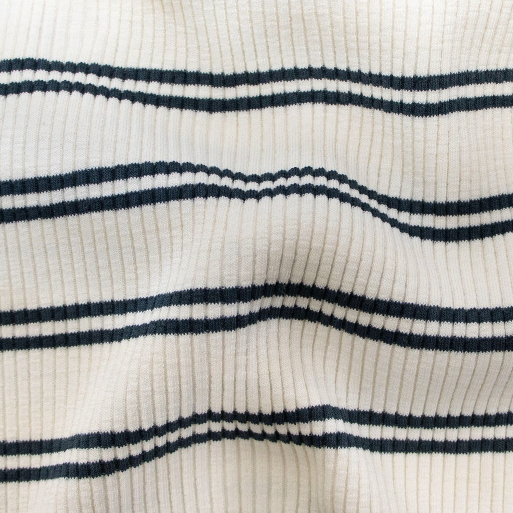 Hochwertiger Ripp-Jersey von Sanetta mit klassischem Streifenmuster. Dieser elastische Stoff besticht durch seine robuste Rippenstruktur und angenehme Griffigkeit. Ideal für die Verarbeitung von Kinderkleidung, Unterwäsche und Freizeitmode. Der Jersey bietet optimale Bewegungsfreiheit und Tragekomfort durch seine natürliche Dehnbarkeit. Sanetta steht für nachhaltige Qualität und sorgfältig ausgewählte Materialien. Perfekt für Näherinnen und Näher, die Wert auf Langlebigkeit und Verarbeitungsqualität legen.