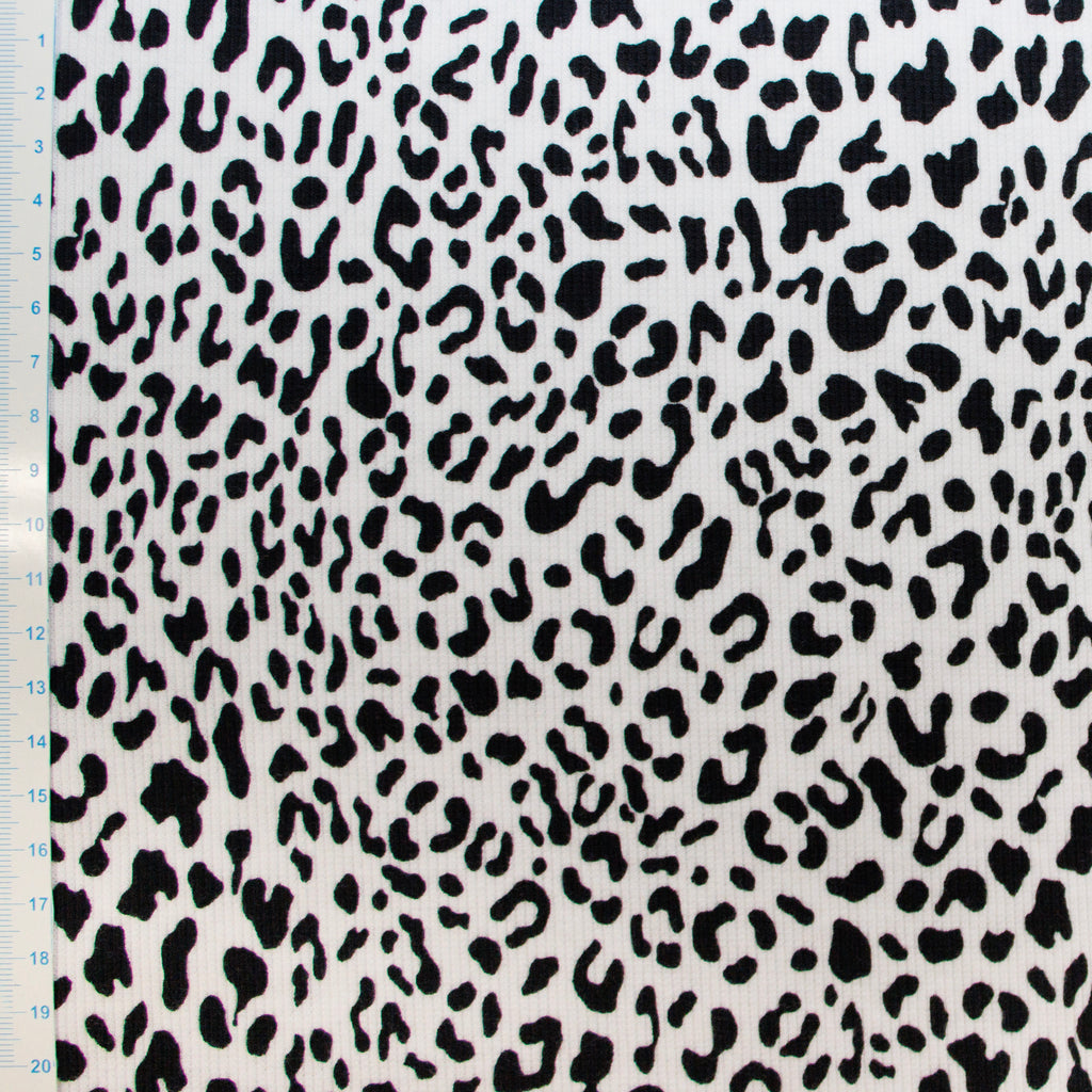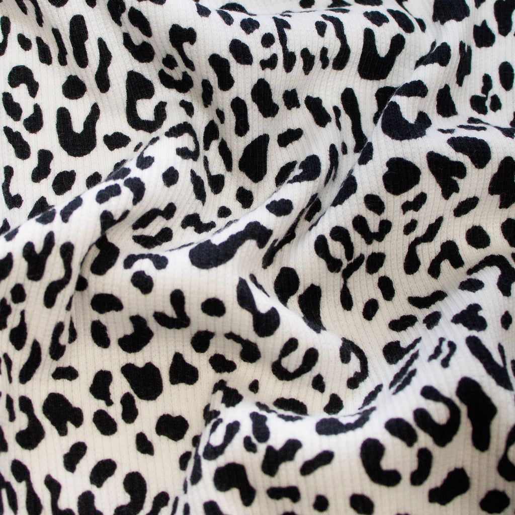 Dieser Ripp-Jersey mit Digitaldruck in wollweiß präsentiert ein stilvolles Leo Animalprint-Design. Der elastische Stoff bietet durch seine gerippte Struktur eine angenehme Dehnbarkeit und sorgt für hohen Tragekomfort. Ideal für modebewusste Kleidungsstücke, verbindet er optische Raffinesse mit funktionaler Flexibilität. Perfekt geeignet für individuelle Nähprojekte, die ein markantes, zugleich hochwertiges Material erfordern.
