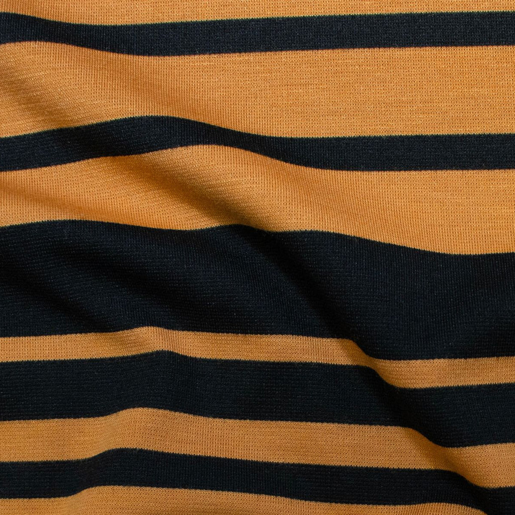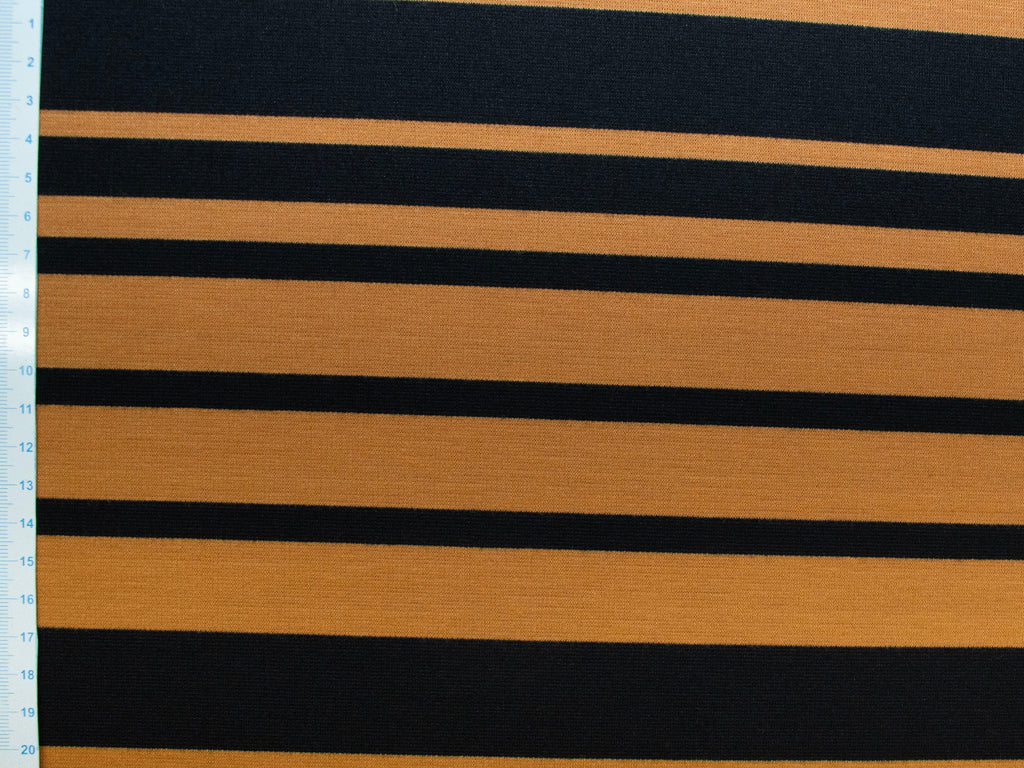 Romanit Jersey mit klassischem Blockstreifenmuster in Schwarz und Curry – ein vielseitiger Stoff für anspruchsvolle Projekte. Das feinmaschige Jersey besticht durch seine geschmeidige Haptik und angenehme Elastizität, die Bewegungsfreiheit garantiert. Die harmonische Farbkombination eignet sich hervorragend für moderne Schnitte und zeitlose Designs. Ideal für Kleidungsstücke, die Komfort und Stil vereinen. Der hochwertige Stoff verspricht Langlebigkeit und behält seine Form auch nach häufigem Tragen und Waschen.