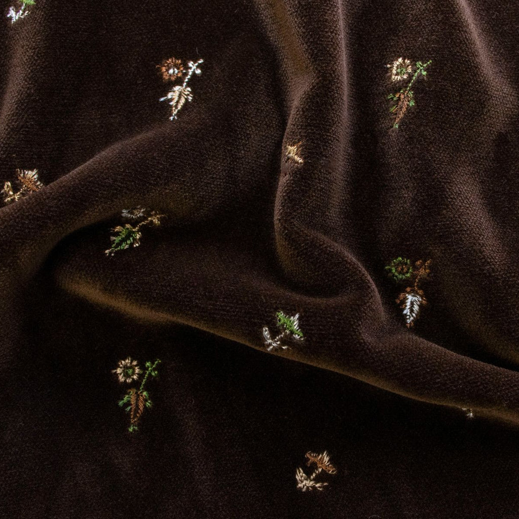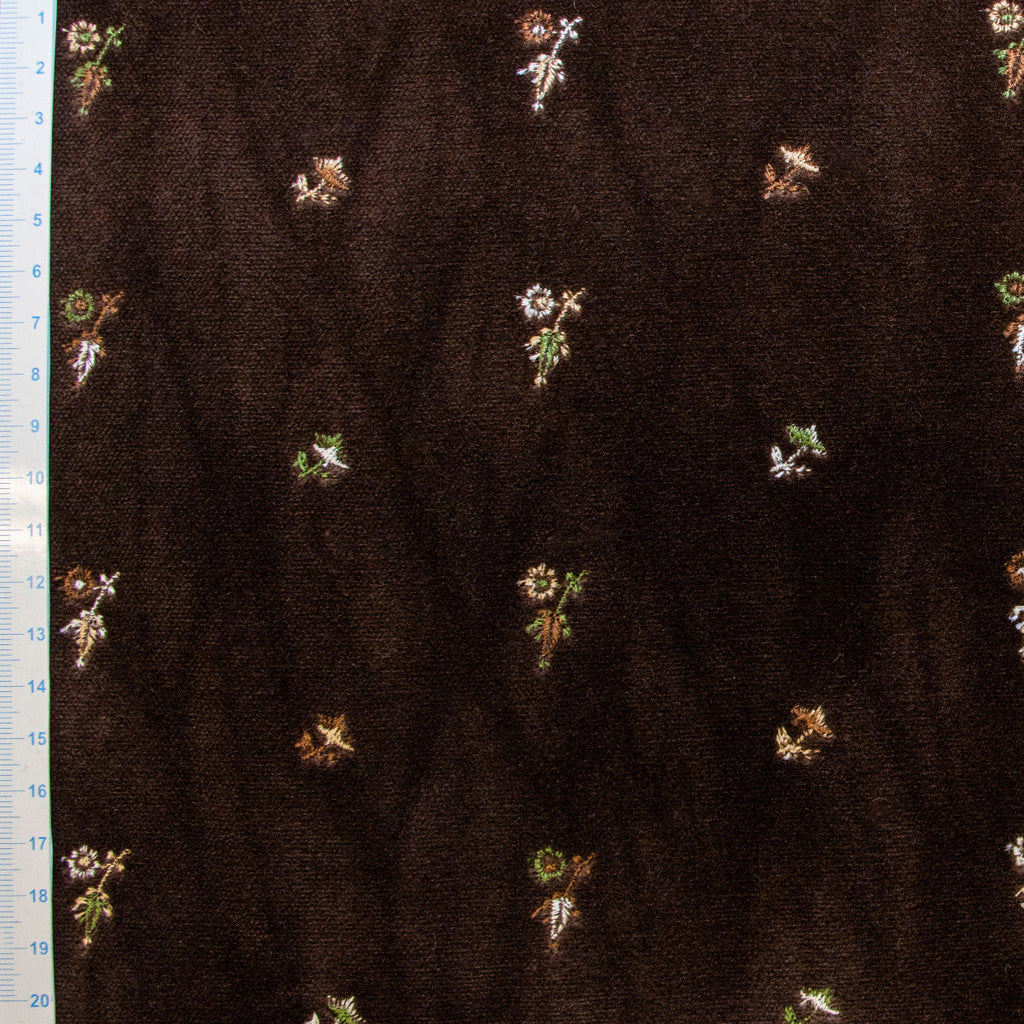 Samt / Velvet bestickt - Blümchen - braun Romantik trifft auf Raffinesse! Dieser wunderbar weiche Samt in warmem Braun wird durch zarte bestickte Blümchen zum absoluten Hingucker. Jede Blüte erzählt eine Geschichte von handwerklicher Liebe zum Detail. Ideal für Polsterprojekte, Dekokissen oder elegante Accessoires, die Ihrem Zuhause einen Hauch von Vintage-Charme verleihen. Die Kombination aus samtiger Textur und floralen Verzierungen schafft eine unwiderstehliche Mischung aus Gemütlichkeit und Eleganz. Ein Stoff, der garantiert zum Lieblingsstück wird!