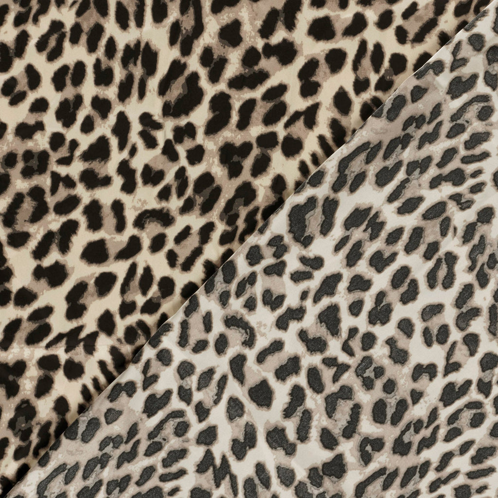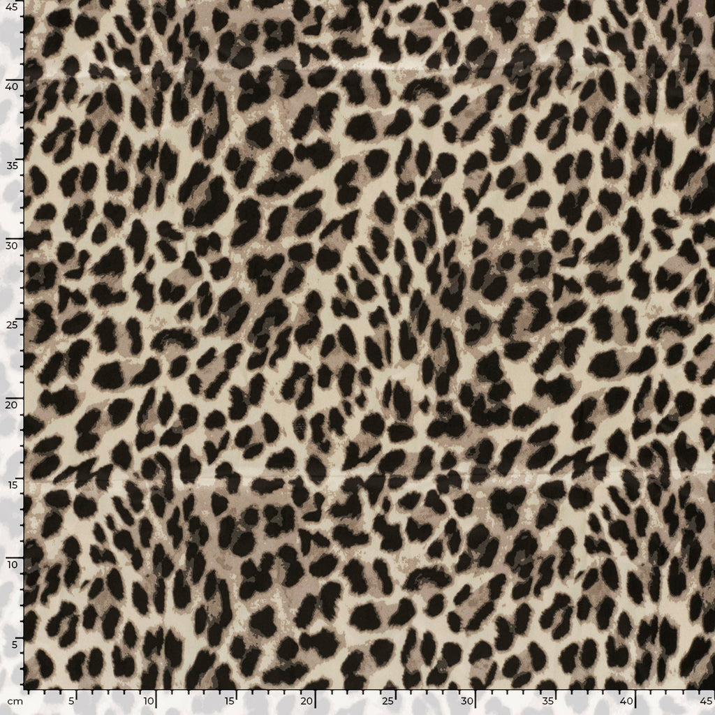 Satin Duchesse Stoff mit bedrucktem Leopardenmuster in Beige vereint luxuriösen Glanz mit dezenter Wildheit. Dieser edle Stoff ist durch seine dichte Webart besonders formstabil und eignet sich ideal für exklusive Kleidungsstücke sowie stilvolle Accessoires. Die hochwertige Oberfläche verleiht Ihren Kreationen eine elegante Note, während das dezente Leo-Design für einen modernen, selbstbewussten Look sorgt. Perfekt für anspruchsvolle Projekte, bei denen Qualität und Design Hand in Hand gehen.