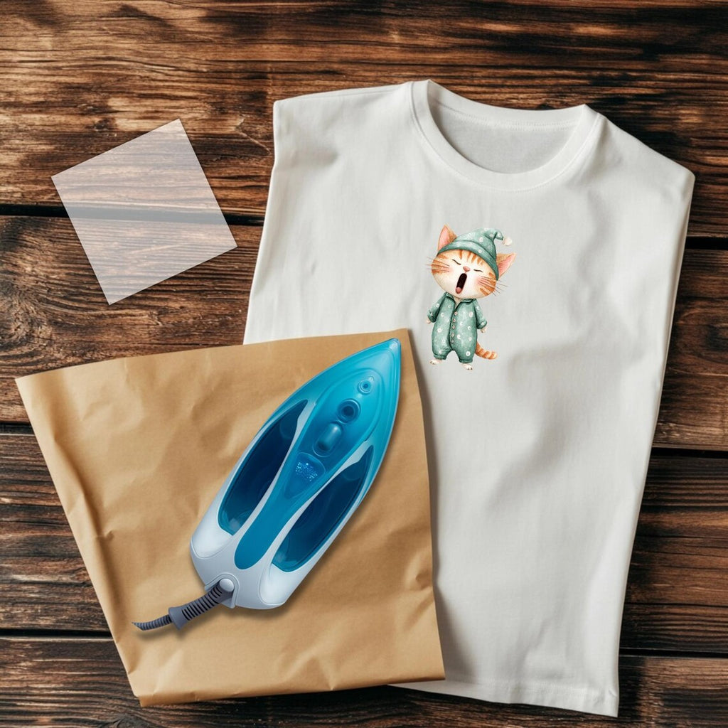 Müde Katze im Pyjama in Wasserfarbe zum Aufbügeln, Süßes Motiv für Mädchen Gute Nacht T-shirt