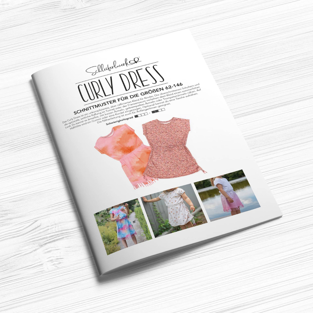 Das Curly Dress ist ein unkompliziertes, aber raffiniertes Kleid für Kinder. Die überschnittenen Schultern und die optionale, seitliche Raffung im Tunnel oder der Fransensaum verleihen dem Kleid einen sommerlichen Look. Du kannst es ärmellos, mit kurzen Ärmeln, gekrempelten Ärmeln oder Trompetenärmeln nähen. Auf Hüfthöhe wird ein Gummi oder eine Kordel eingezogen. Optional kannst du eine Tasche aufnähen.