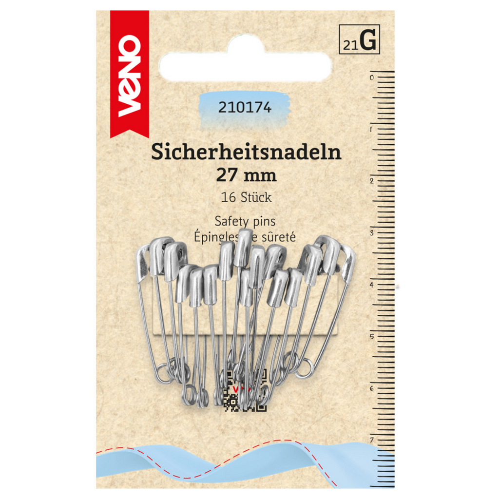 Dieses Set enthält 16 silberfarbene Sicherheitsnadeln mit einer Länge von 27 mm. Die kompakte Größe macht sie ideal für kleine Befestigungsaufgaben und schnelle Reparaturen. Gefertigt aus robustem Material, bieten sie sicheren Halt und sind vielseitig einsetzbar – perfekt für den täglichen Gebrauch oder unterwegs. Ein praktisches Must-have für jeden Haushalt.