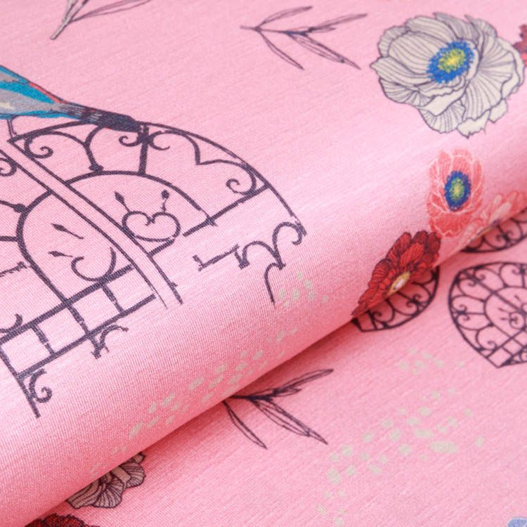 Tauche ein in einen bunten Garten voller Leben! Dieses bezaubernde Slub-Jersey aus Viskose zeigt ein lebendiges Muster mit Blumen und Vögeln in strahlendem Korallaton. Die charakteristische Slub-Struktur sorgt für eine angenehm griffige Oberfläche und verleiht jedem Projekt Charakter. Der fließende Fall und die hautfreundliche Viskose machen diesen Stoff zur ersten Wahl für verspielte Kinderkleidung, luftige Sommertops oder farbenfrohe Accessoires. Mit dem Design von Bienvenido Colorido holst du dir ein Stück Natur direkt in deine Nähwerkstatt!